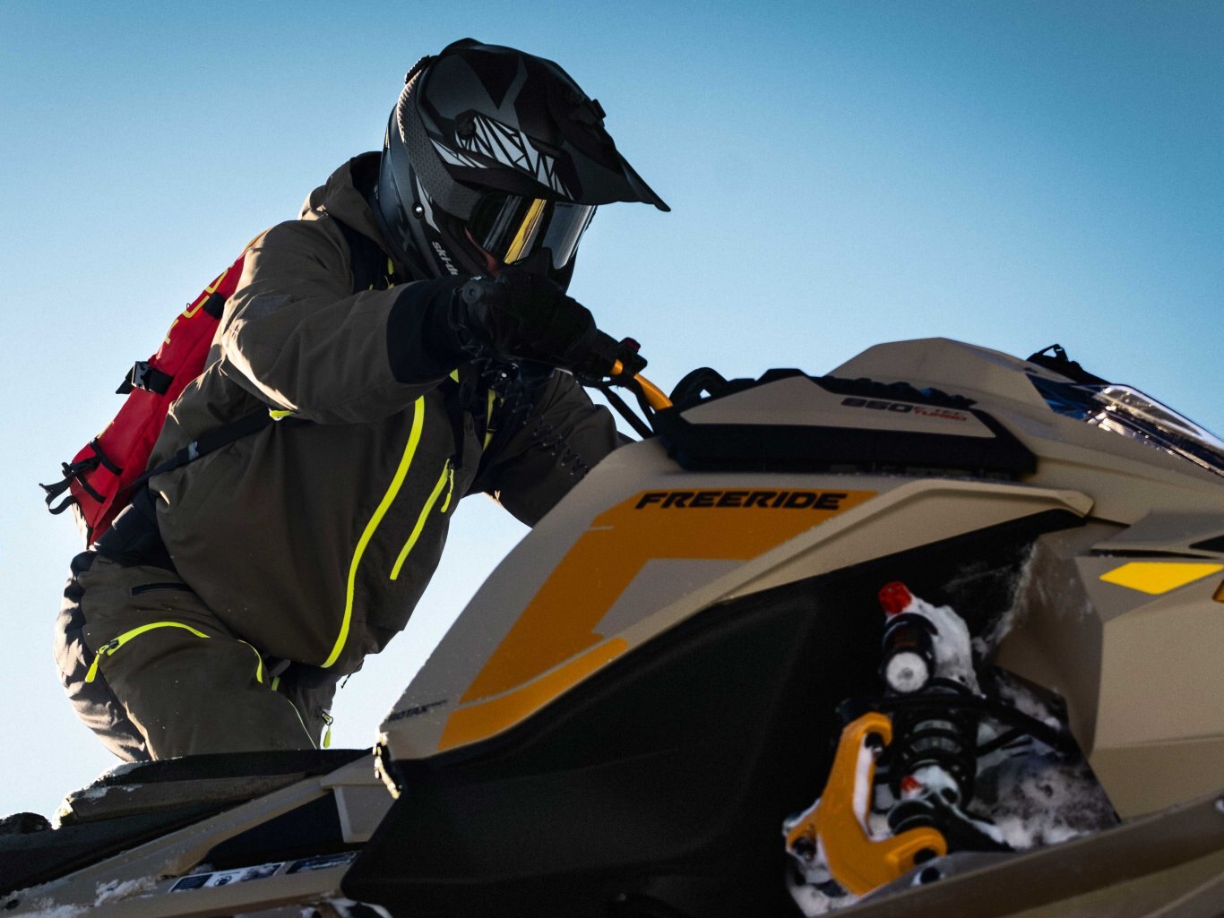 The Freeride is the deep-snow snowmobile built for riders who go big and don't look back. Built with a big attitude for big drops and taking on the most intense terrain a rider dares to explore, there's no bigger statement this winter.