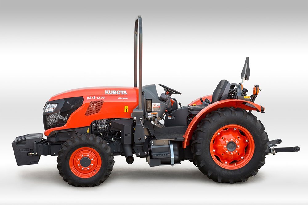 Kubota engineered the M4N specifically for work in vineyards, orchards or anywhere else that might require a narrow tractor that features M-Series power. With an intelligently revamped operator station, improved hydraulic capacity and an updated V-3800-Tier IV engine, the M4N deliver on Kubota's proven versatility, dependability and strength.