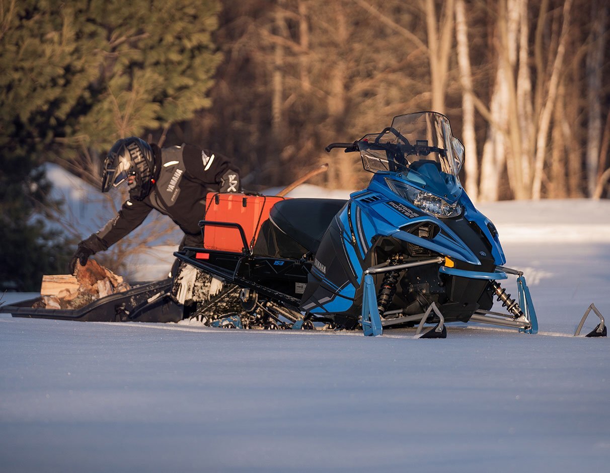 | The needs of snowmobilers who use their machines as a way of life are vastly different than those who seek the thrill and adventure of recreational riding. Yamaha has a deep understanding of what it takes to get the job done in the extremes of winter. The simple design and dependability of the technically advanced Transporter 800 articulated long track fill these needs. At its heart is a reliable 2-stroke, 794cc engine with back-up recoil starting. Purposeful attributes like a rugged storage rack, sturdy tow hitch, long range fuel capacity and functional protection from the elements are all provided to fit those special needs. |