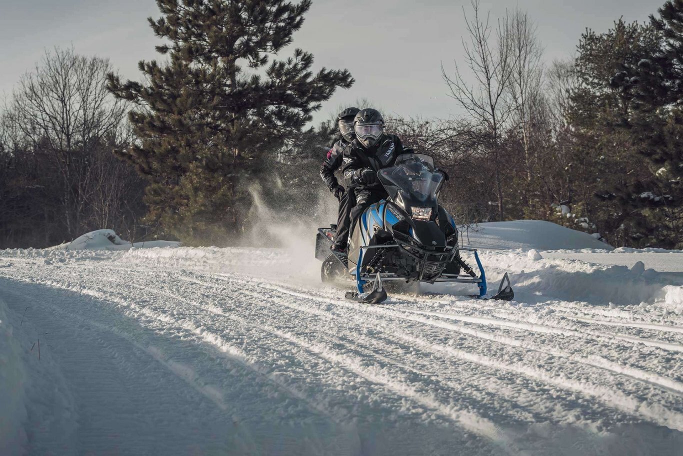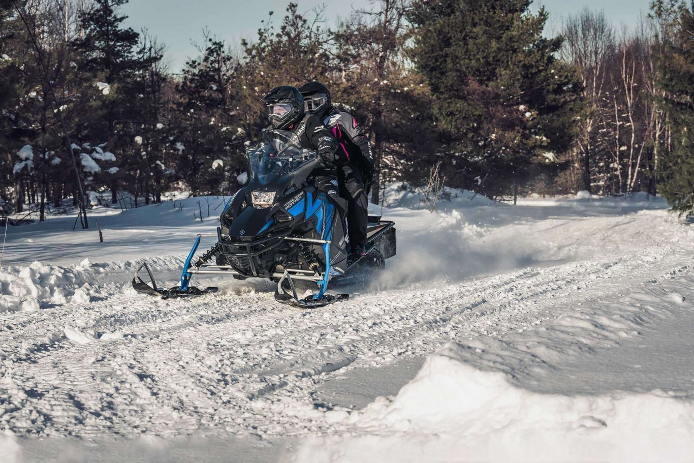 | The Yamaha Transporter Lite 2-Up is a new model offering all the key features of our full touring snowmobiles in a much lighter package and at a very attractive price. The compact 2-stroke, single cylinder engine generates ample power to keep the pace on trail. Its long 146 inch track excels in soft snow while bridging the gaps on a rough trail for a more comfortable ride. Passenger overload springs are included to adjust the suspension for both single and two up cruising. The value and performance of the Transporter Lite 2-Up is very hard to beat. |