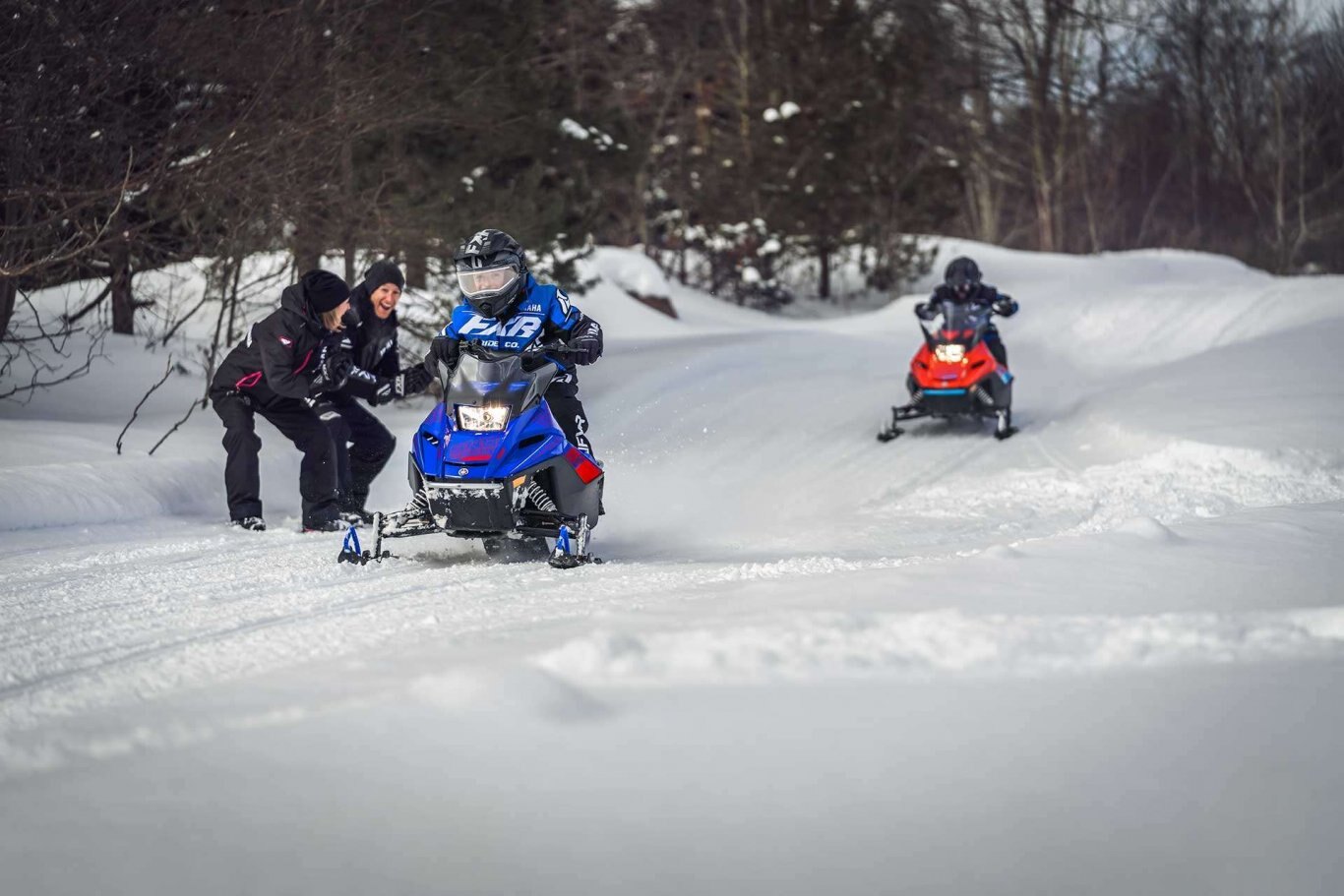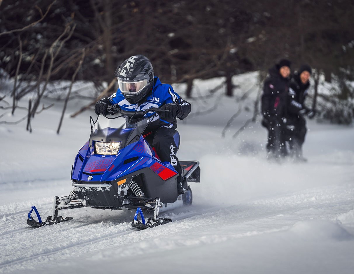 | The Snoscoot is an easy to ride electric start, four-stroke, 200 class snowmobile for younger, smaller or inexperienced riders. The Yamaha engine creates enough power to keep the smiles and excitement lasting for years while staying safe and affordable. Even adults will have a ton of fun on the Snoscoot! |