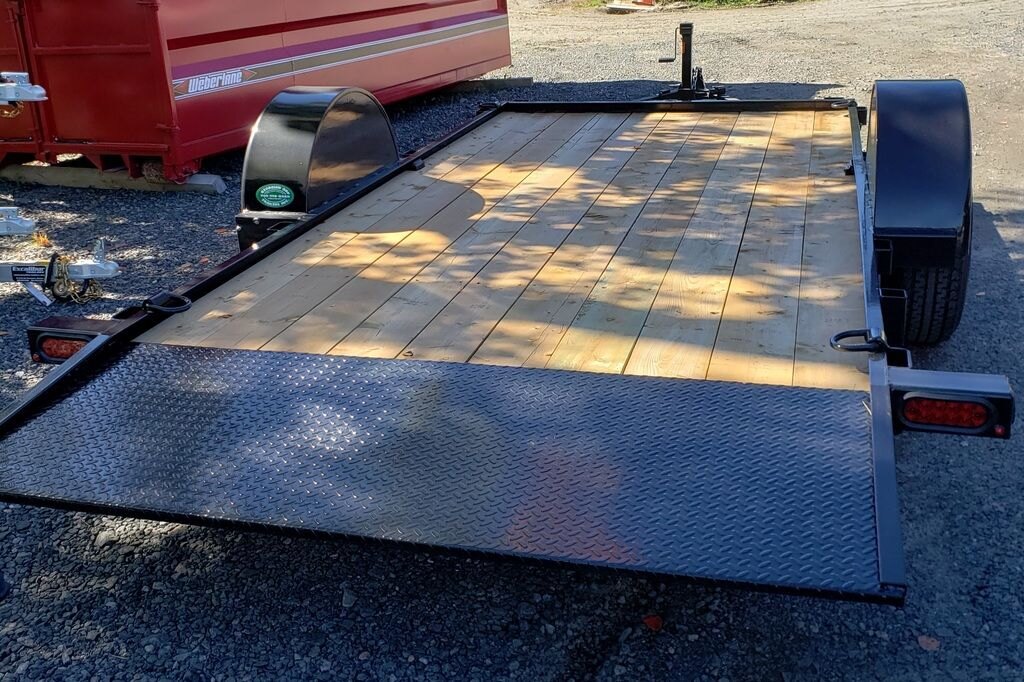 Accessories: Canada Trailers Tilt and Load 612-7K trailer is 6\'x12\' and may include: 15\" Radial Tire, Slipper Suspension, Ramp. Spare Tire Mount. Powder Coated. Pressure Treated Wood Floor. Sealed Beam L.E.D. Lights and Harness System. Transport Canada DOT Approved Lighting.