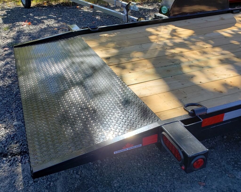Accessories: Canada Trailers Tilt and Load 614-7K trailer include: 15\" Radial Tire, Slipper Suspension, Ramp. Spare Tire Mount. Powder Coated. Pressure Treated Wood Floor. Sealed Beam L.E.D. Lights and Harness System. Transport Canada DOT Approved Lighting.