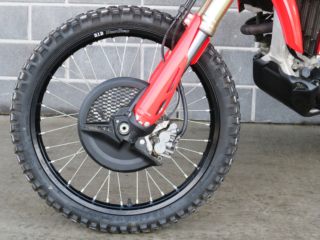 Dig in deep with 18-inch rear and 21-inch front, enduro spec DOT tires