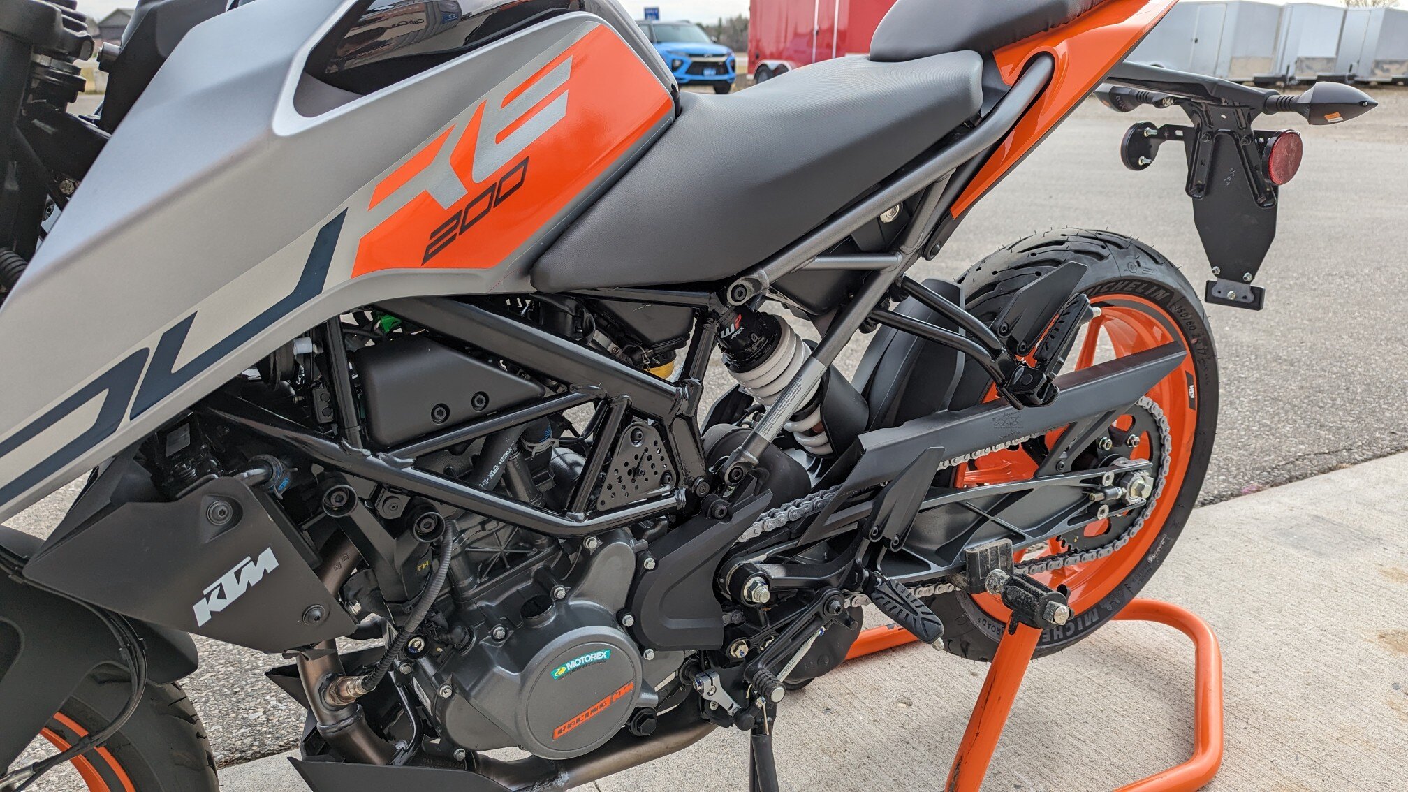 Thanks to an ultra-compact single-cylinder 4-stroke power plant and a lightweight tubular chassis, the KTM 200 DUKE packs a mighty punch. An updated predatory design proudly displays its BEAST-inspired DNA and shouts DUKE. Make no mistake - the KTM 200 DUKE is an out-and-out street prowling brawler.