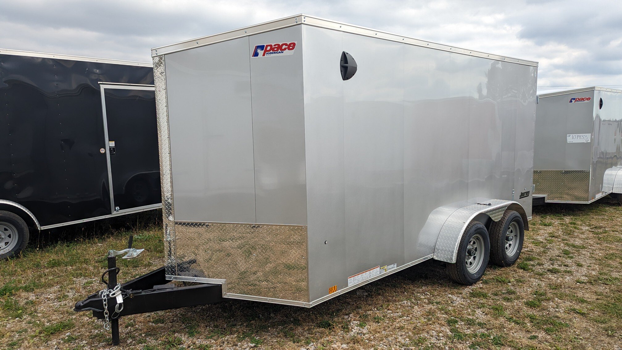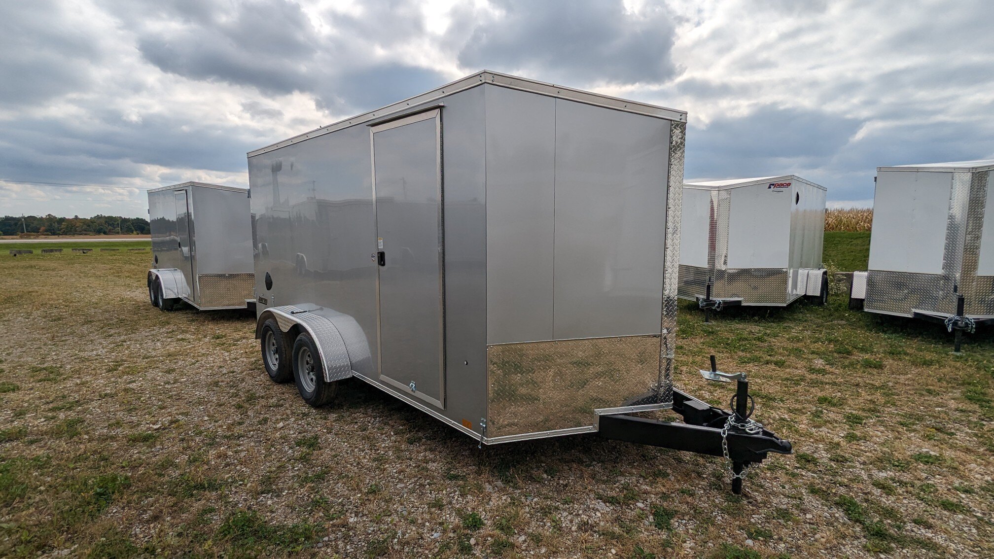 Build Details: - 4\" Tube Main Frame - 6\" A-Frame Tube Tongue - 16\" On-Center Full Height Crossmembers - 16\" On-Center Tube Sidewalls - 24\" On-Center Roof Bows - 24\" Deep Sloped V-Nose with 6\" Drop - 2-5/16\" A-Frame Ball Coupler - Safety Chains - 7-Way Electric Plug - 2K Coupler Mounted Jack - 32\" Wide Entry Door with Flush Lock - Metal Wire Door Holdback - Rear Ramp Door with Spring Assist - ATP Fenders - Drop Spring Brake Axle(s) - Superlube Hubs - ST205/75R15 \'C\' Radial Tires - 15\" Silver Steel Wheels - Automotive Undercoating - 0.030\" Aluminum Exterior - Screwless Exterior - Seamless Aluminum Roof - ATP Nose Cap - 2.5\" Top Trim - 1.5\" Bottom Trim - 24\" Tall Straight ATP Stone Guard - Colour Matching Rear Hoop - Sidewall Vents - 78\" Interior Height (72\" Standard \ 6\" = 78\") - High Performance Wood Walls and Trim - Lauan Ceiling Liner Strip - 3/4\" High Performance Wood Flooring - (1) LED Dome Light with Switch - Bullet LED Marker and Clearance Lights - Slimline LED Tail Lights with Integrated Backup Light - Rear Double Doors - Zinc Holdback