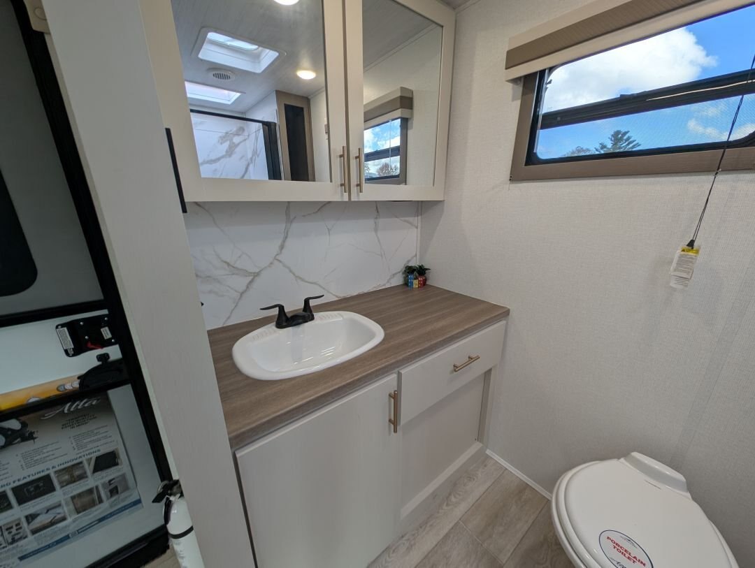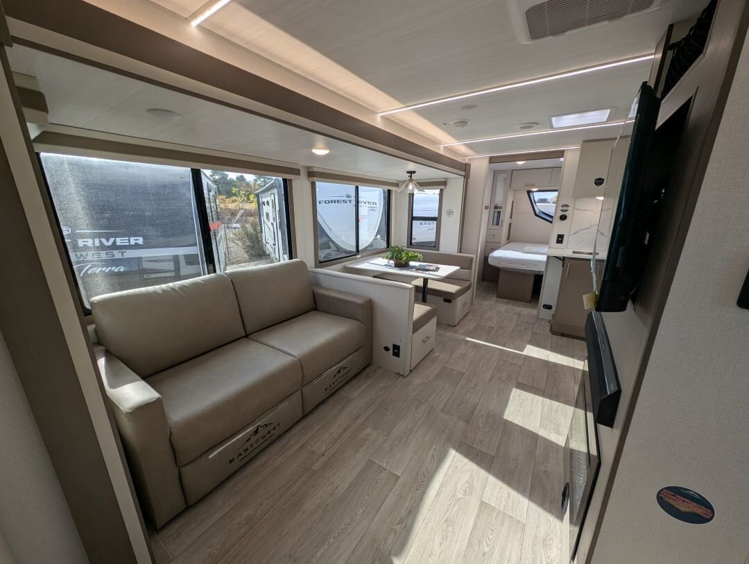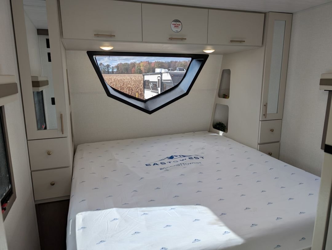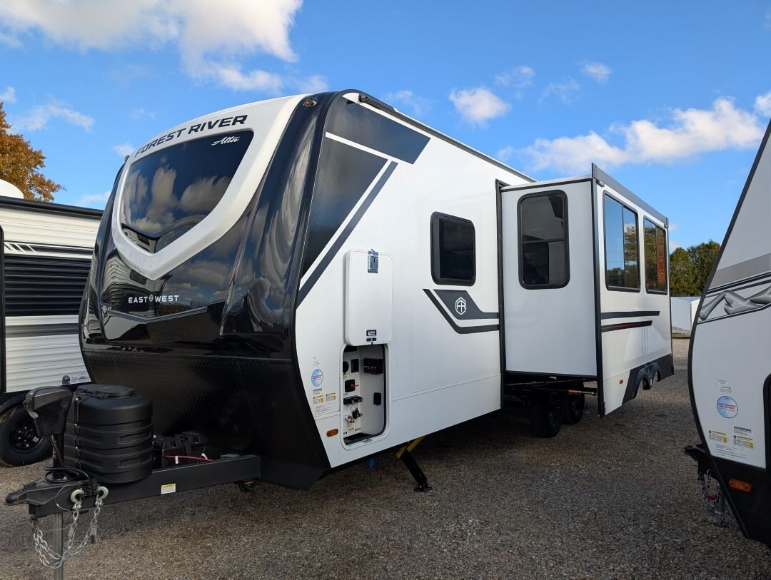 REG: $61,995 SALE: $55,995 \ 4.75% Financing \ Don\'t Pay \'Til May \ Free Storage The 2026 East to West Alta 2600-KRB just landed at In The Hunt Trailers. This beautiful couples coach is everything you need for the perfect getaway. With all the comforts you want, at an affordable price. Now with automatic leveling, 400W Solar package, and TOTALLY redesigned interior! Financing available for as low as $99/week OAC. SPECS HITCH WEIGHT: 660 LB. DRY WEIGHT: 6,161 LB. CARRY CAPACITY: 3,299 LB. EXTERIOR LENGTH: 30\' 5\'\' EXTERIOR HEIGHT: 11\' 2\'\' EXTERIOR WIDTH: 96\'\' FRESH WATER: 53 GAL. GRAY WATER: 60 GAL. BLACK WATER: 30 GAL. AWNING SIZE: 21\' Features: LUXE DECOR PACKAGE 81\'\' Interior Ceiling Height 10.7 Cubic Foot 12 Volt Black Glass Residential-Inspired Refrigerator 3-Burner Range w/ Oven Solid Bedroom Door Cable/Satellite Ready USB Charging Stations (Beds, Bunks, & Tables Where Available) Tri-fold \'\'Ez-Out\'\' Sleeper Sofa Where Available Solid Pressed Membrane Countertops Skylight Above Shower/Tub Interior LED Lights ABS Tub Surround & Cabinet In Bath Oversized Window Package with Valance and Lambrequin Window Treatments Black Roller Shades Porcelain Foot Flush Toilet 48\'\' Dinette, With Pullout Storage Drawers Underneath Upgraded Residential-Inspired Linoleum Flooring 35,000 BTU Furnace 2 Zone Sound System Bluetooth / HDMI Connectivity Pet Drawer Under Bed Storage ADVANTAGE PACKAGE 5\'\' Vacuum Bonded Roof 2\'\' Laminated Sidewalls with Azdel on both Sides Aluminum Rims Universal Docking Station Water Heater Bypass Power Awning with LED Lights & Auto Dump Enclosed & Heated Underbelly Flush Floor Slide Out 15,000 BTU Ducted Air Conditioner with Quick Cool Tank & Water Line Heaters (3100KXT, 3250KXT Only) Black Tank Flush Outside Shower with Hot & Cold Water High Output On-Demand Tankless Water Heater High Definition/Amplified TV Antenna with Wi-Fi Prep Backup Camera Prep Rear Ladder Diamond Plate Front Rock Guard Exterior LED Lights Detachable Power Cord Power Tongue Jack with LED Light 2nd Power Awning Control in the Pass Through Storage Compartment Exterior Swing Arm Entry Assist Handle Automatic Leveling & Stabilizing System Marine Grade Exterior Speakers R.V.Q. Quick Connect High Pressure Fresh Water Fill OPTIONS Goodyear® Tires (Mandatory on all models) (N/A LE) Solid Entry Step (Mandatory all Models) 40\'\' LED Smart TV 50 Amp Service with 2nd A/C Prep West Coast Power Package - 400 Watt Panel and 30 Amp Controller 12 Volt - 1800 Watt Pure Sign Wave Inverter