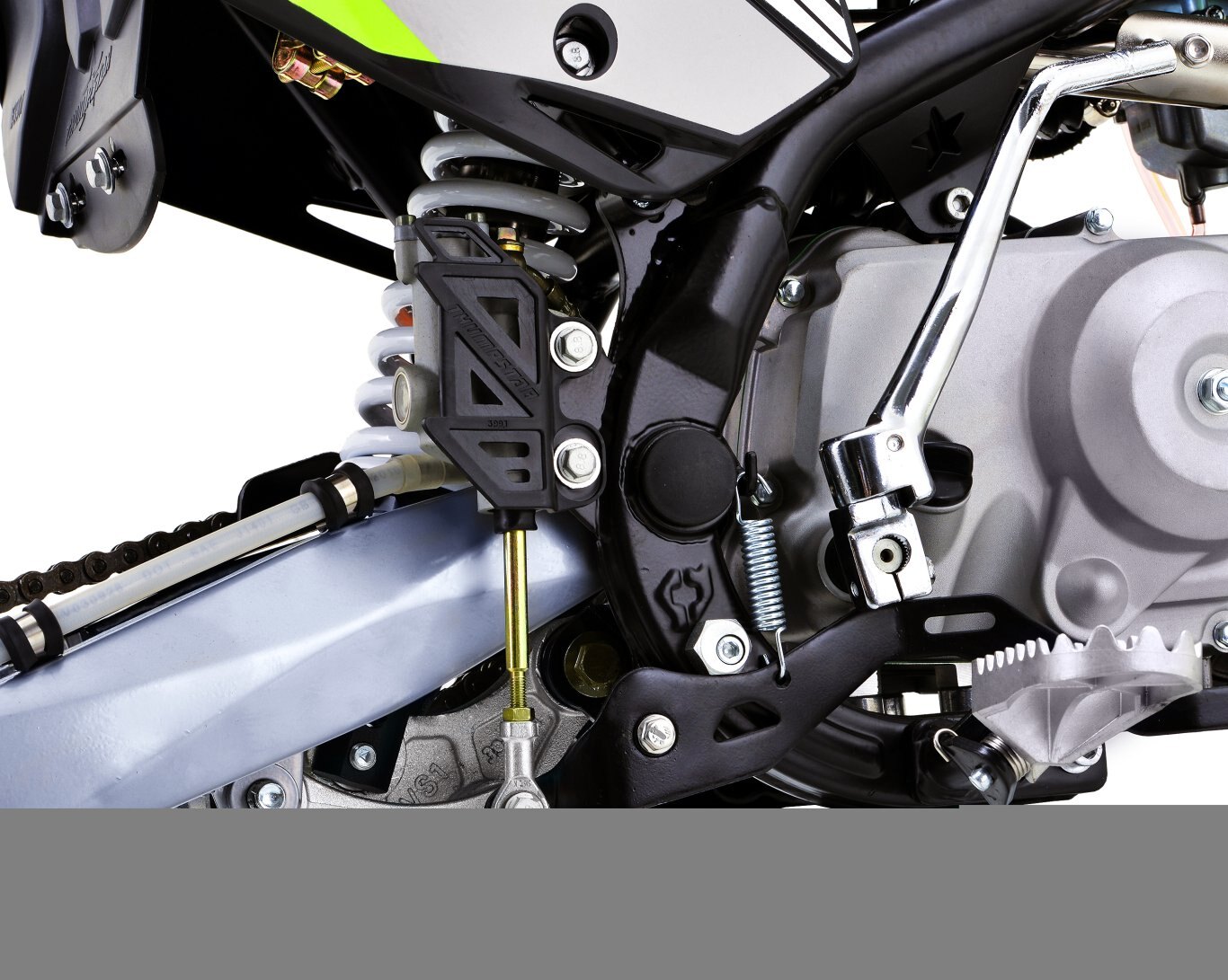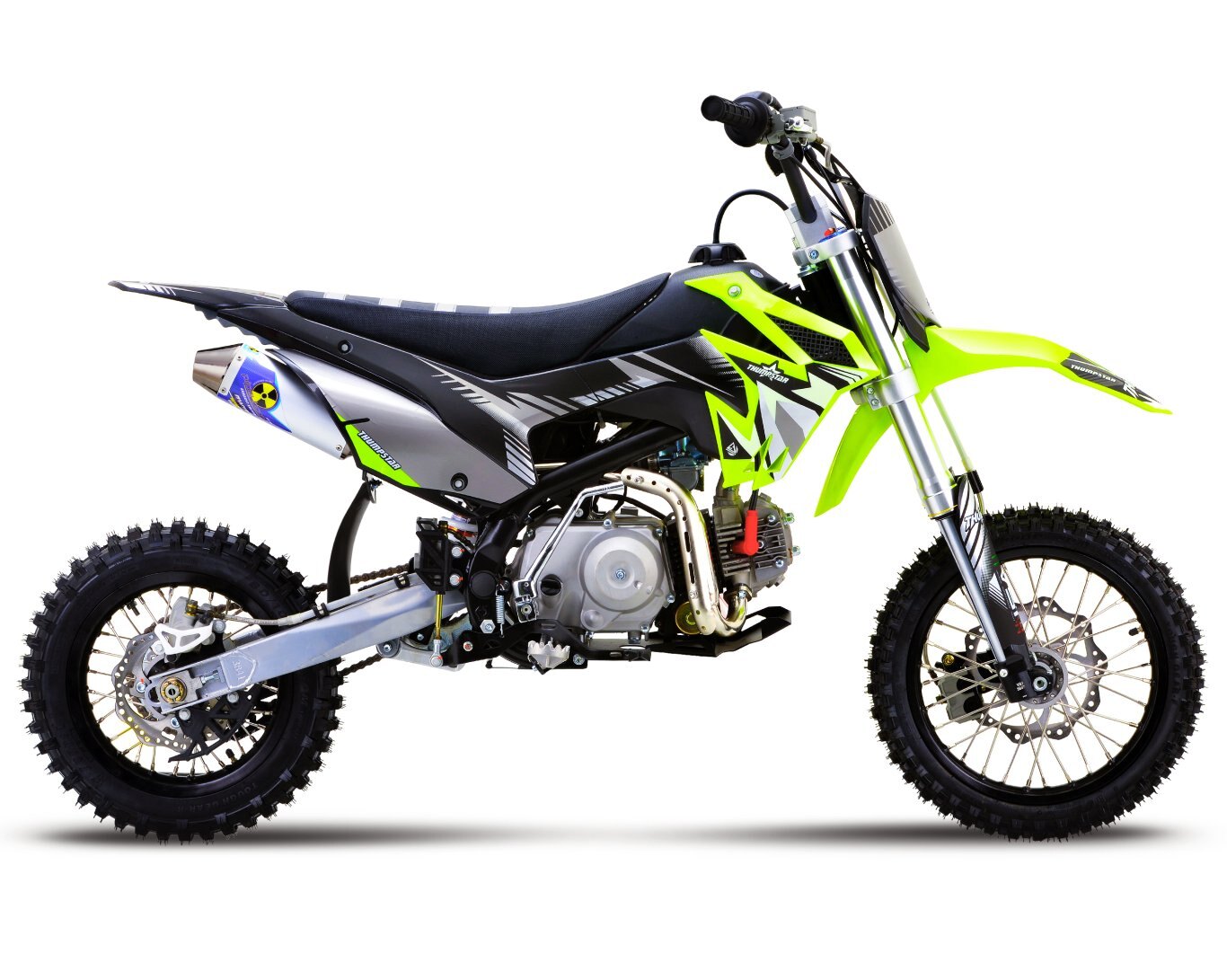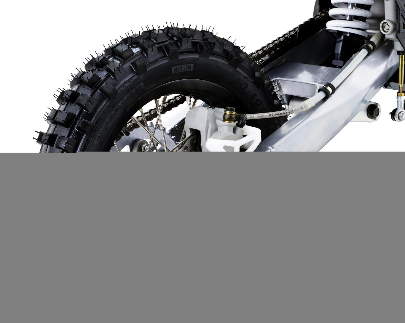 Our design team has produced a piece of engineering art, the frames are a new Quad Bar which has made them stronger than ever. Along with the frame developments we made space and rigged them with mounts to accommodate our new caged airboxes, this allows a better air filtration system while increasing airflow into the carburetor and in turn more horsepower. A first on pit bikes and minibikes alike, we have scaled down the linkage from the likes of a full size race bike, and fitted it to these smaller sized 110s. The linkage provides a much smoother ride than traditional PDS style suspension which allows for faster cornering, high and low speed adjustments, and increased rider comfort. We have redesigned our hubs and created space for a much heavier duty 20mm rear axle, coupled with stainless spokes and alloy rims, which provide our strongest wheels to date. Check out our description video and the following spec lists to see these upgrades!