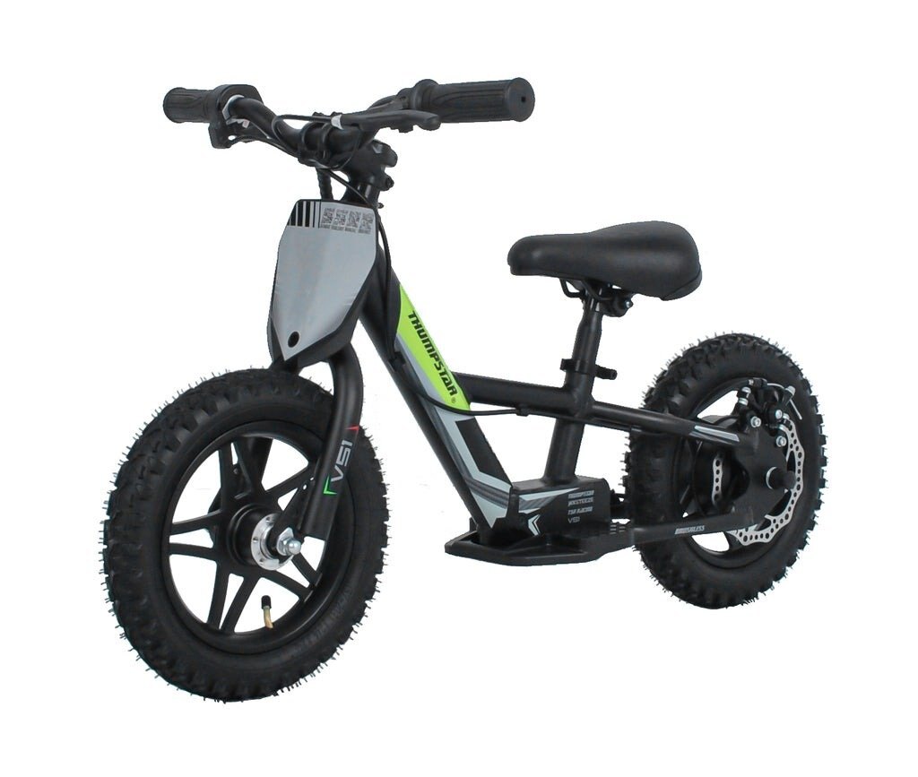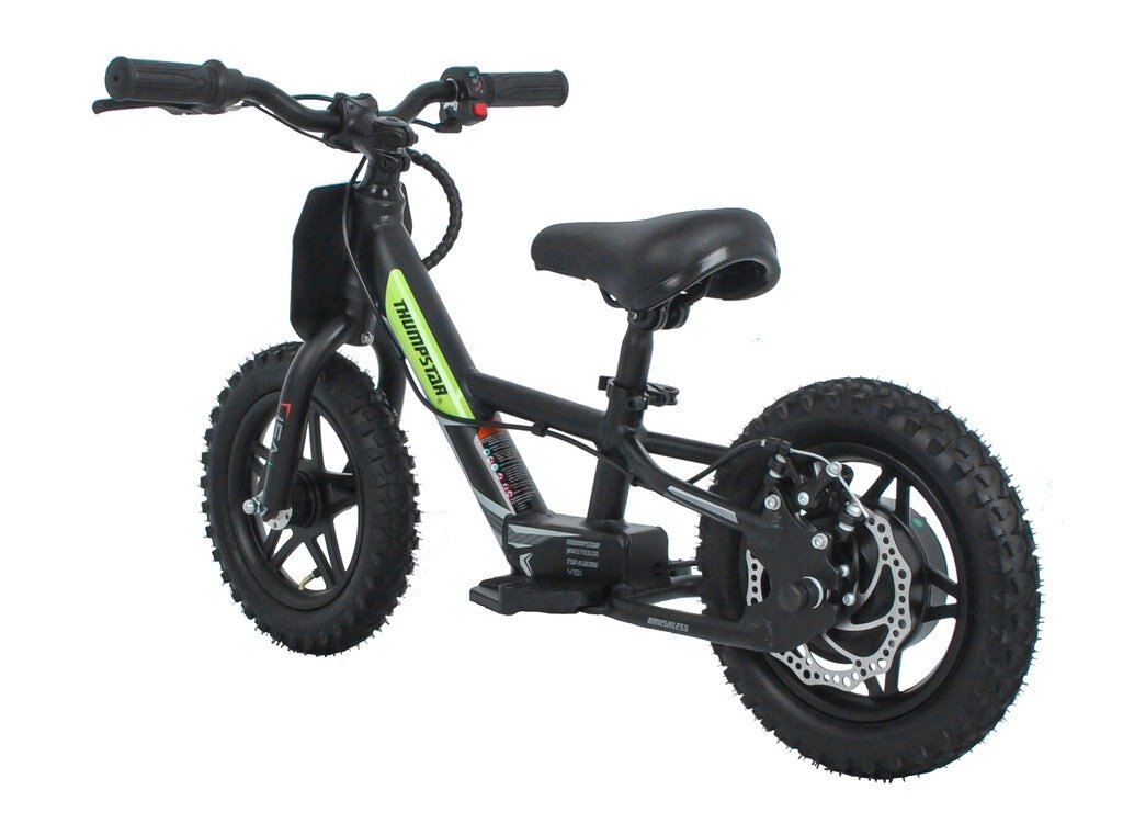 The Thumpstar TSE12H-E3TR Electric Balance Bike is suitable for children AGES 3 and UP. This bike has more safety controls than any other electric starter bike out there!