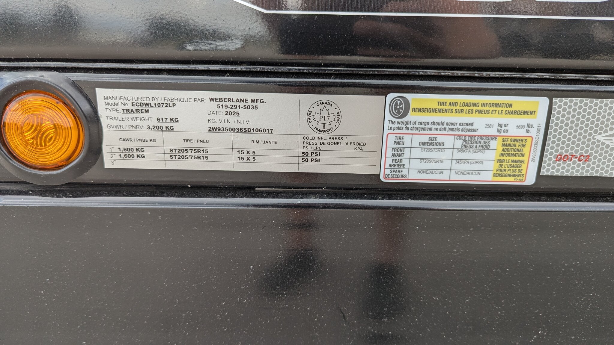 GVWR: 3200 KG / 7040 KG Cargo Weight: 2583 KG / 5683 LB Trailer Curb Weight: 617 KG / 1357 LB