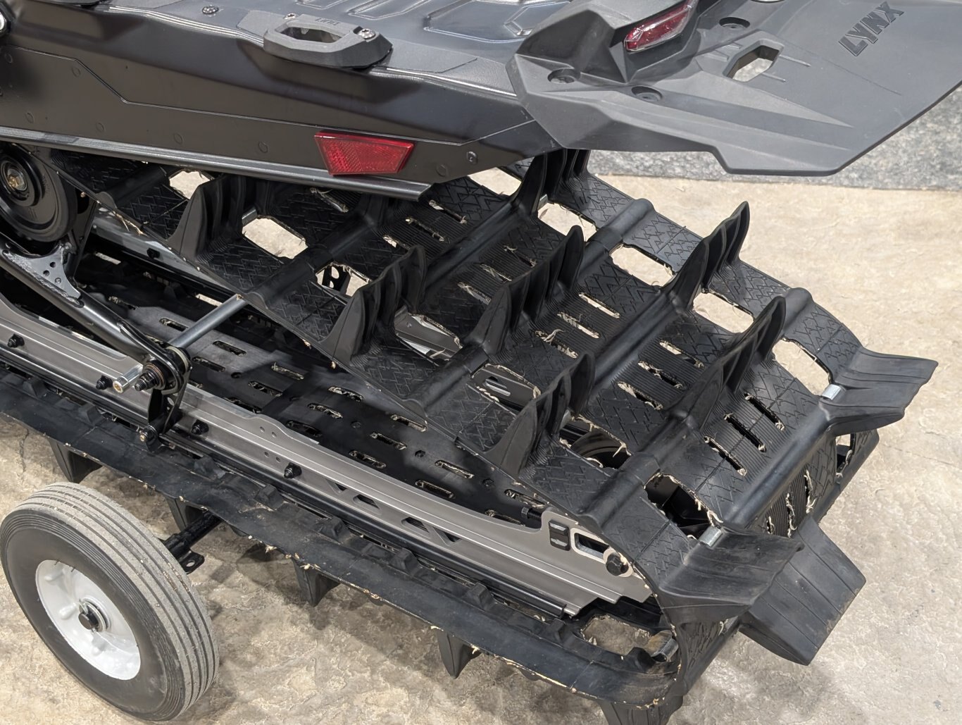 381 mm wide track, featured in all Shredder models, provides agility in deep snow. Full-width rods add stability and prevent wash-outs when sidehilling due to refract of the edge of the track.