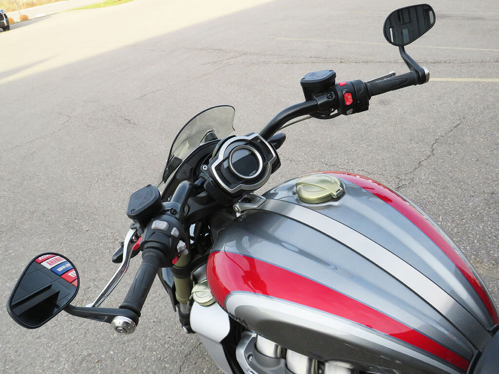 The Rocket 3 Rs roadster-style handlebars deliver a unique muscular feel and commanding riding position.