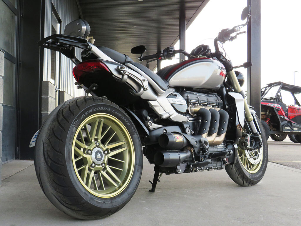 The Rocket 3 has always been in a class of its own and this Rocket 3 R takes that to the next level, with HP Corse exhaust and tuning to match, customized wheels, passenger backrest, and luggage rack. Feel the torque of three 800\cc cylinders firing under you and revel in the wonderful noise they make through the performance exhaust - you'll feel like you are in a class of your own as well!