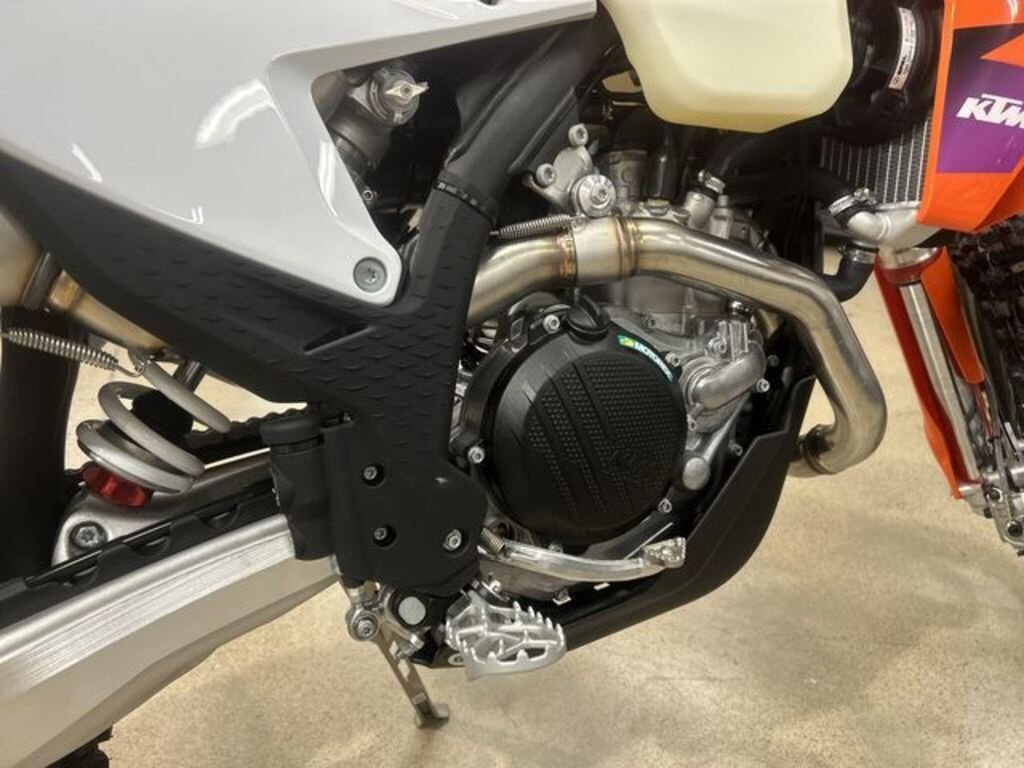 SLEDGEHAMMERThe powerplant in the KTM 450 XCF-W is a perfect example of advanced engineering techniques developed on the race track and transferred to the dealership floor. Offers a peak power output of over 57 hp at an overall weight of just 29 kg, this powerplant is as powerful and it is prone to winning championships. For 2024, it\'s been designed with mass centralization in mind, tilting the engine 2 backward and repositioning the sprocket 3 mm lower, for improved center of gravity, better handling, maneuverability, and anti-squat behavior.