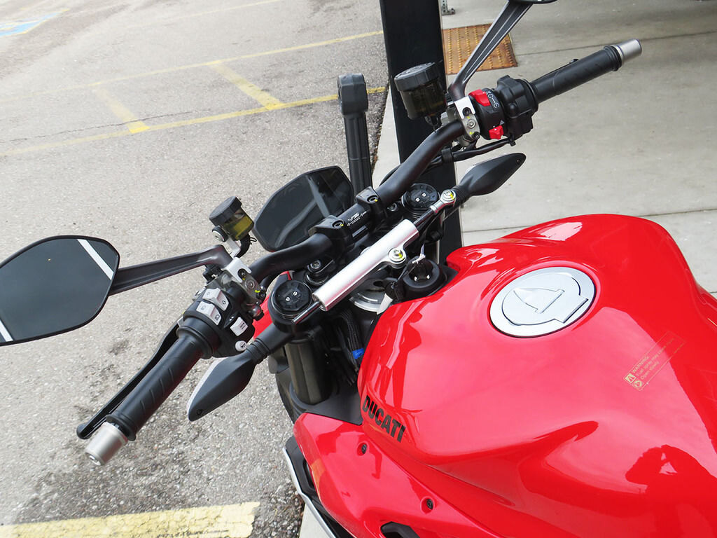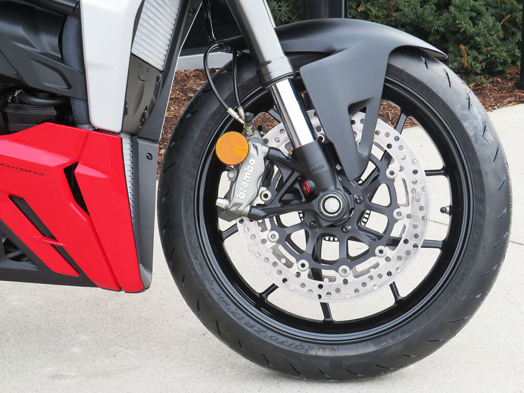 The dry weight of this vehicle is 392 lb and the engine is the 955 cc and 153 hp Superquadro controlled by the latest-generation electronic package.
