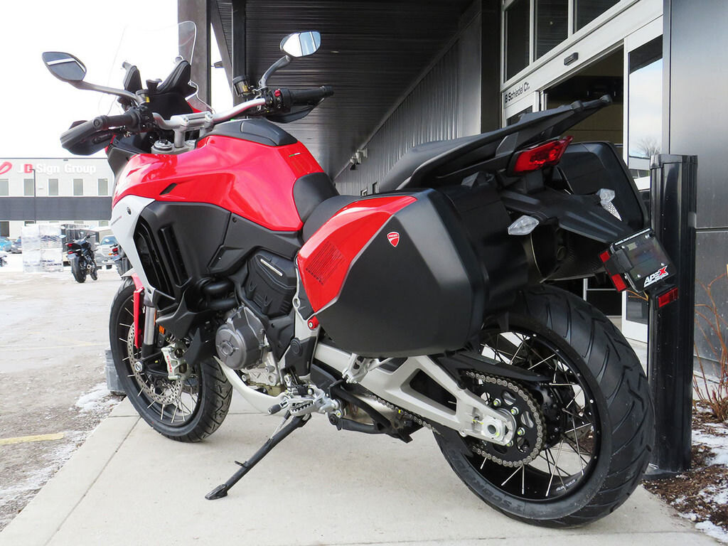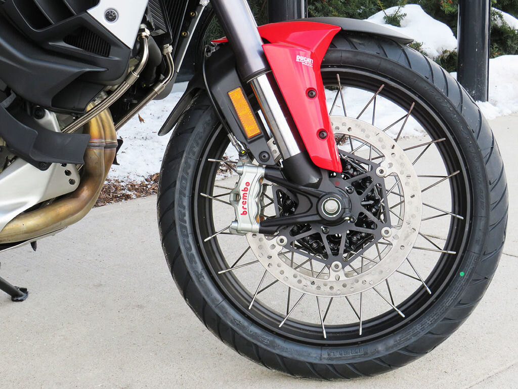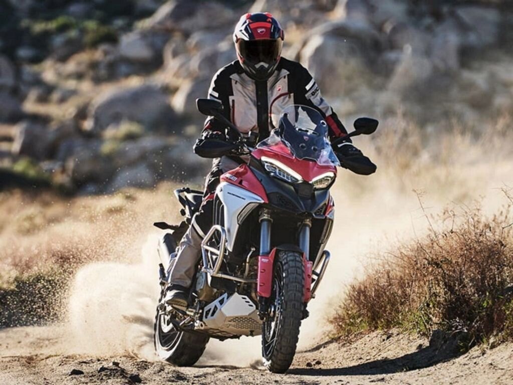 EnduroThe new Multistrada V4 is fun even when the asphalt ends, thanks to the wide ground clearance, the electronic suspensions, the surprising fluidity of delivery and its shapes also designed for standing riding.