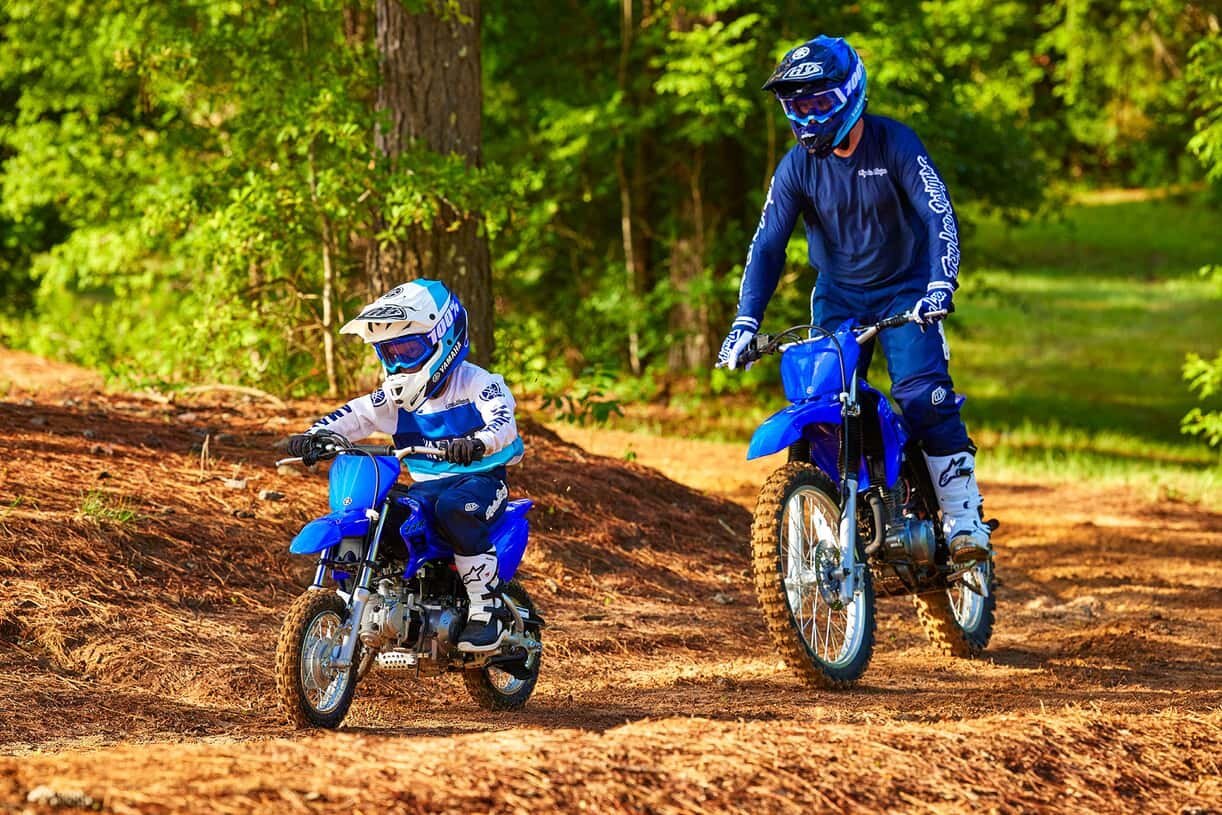 Our littlest TT-R 50 made to teach the thrill of riding boasts big YZ styling, four-stroke power, a three-speed automatic transmission, adjustable speed restrictor and it even comes with a push-button for electric start. The fun starts here so go ahead... play in the dirt!