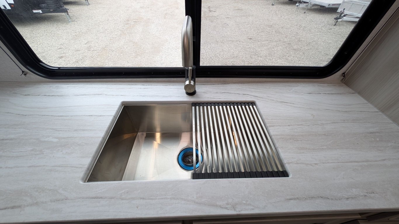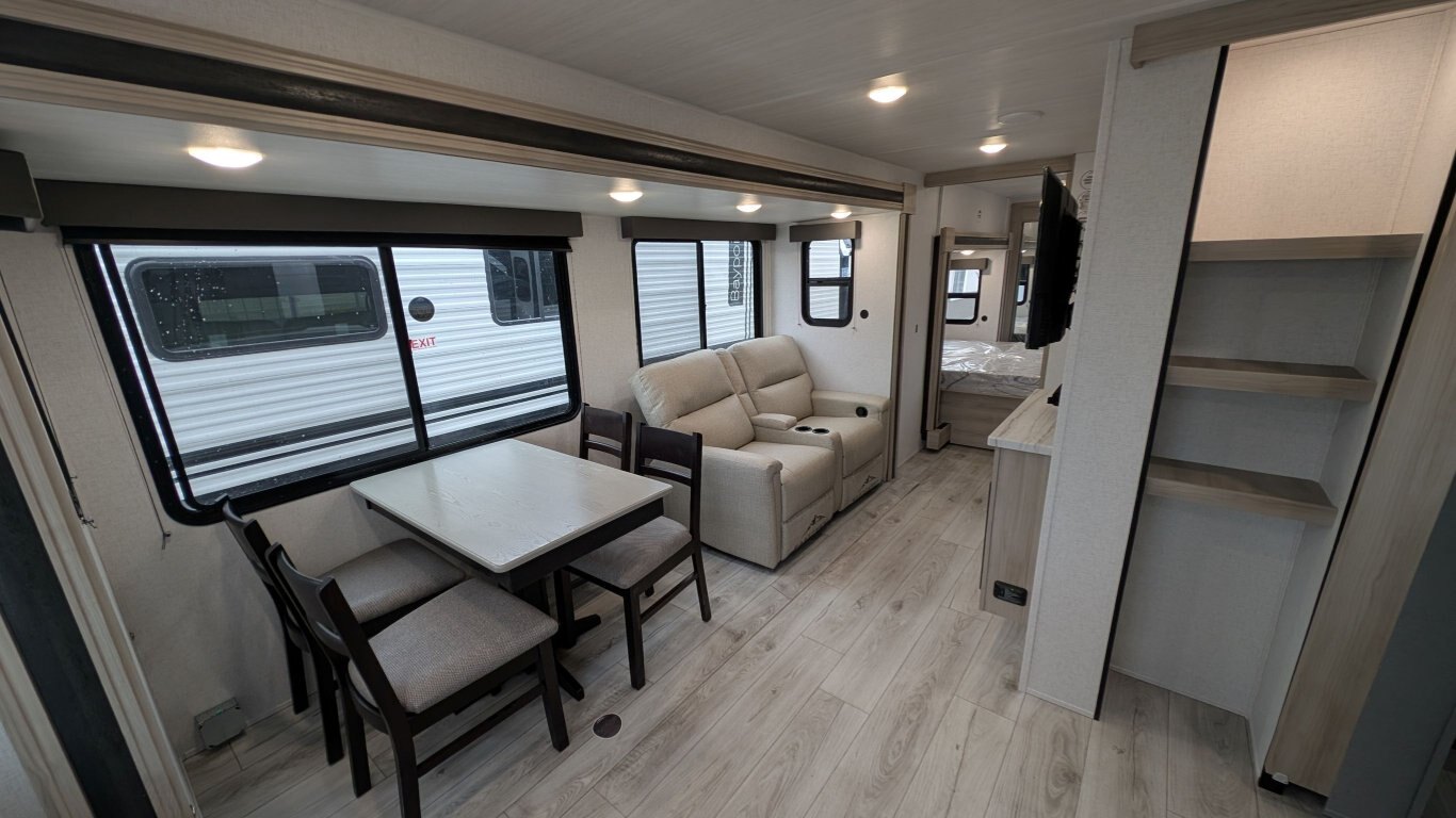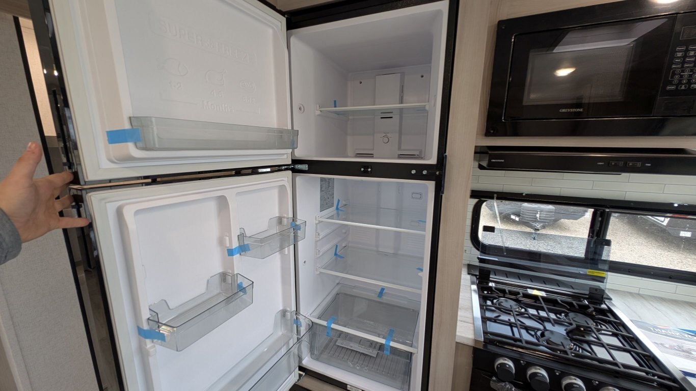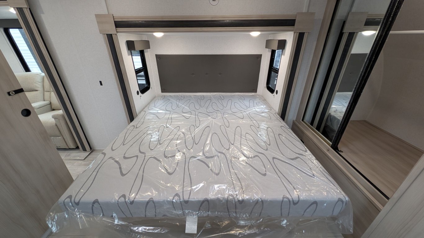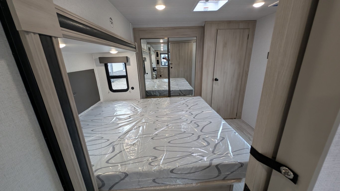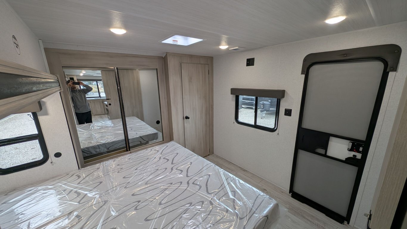 REG: $52,995 SALE: $45,995 The 2025 East to West Della Terra 263RK travel trailer is designed for comfort, convenience, and adventure. It features an 81” interior height, a king-size bed, and an upgraded interior design package featuring Odali Linen interior decor. Financing available for as low as $95/week OAC. This unit features the following options: The Explore Comfort Package includes a 10.7 cu. ft. 12V refrigerator, 3-burner range with oven, built-in fireplace, seamless pressed countertops, porcelain foot flush toilet, and a 35,000 BTU furnace. Enjoy large tinted picture windows, USB charging stations, LED lighting, and a solid bedroom door. The Adventure Outdoor Package enhances functionality with a universal docking station, tankless water heater, power awning with LED lighting, outside shower, backup camera prep, solid entry steps, solar prep, and an RV grill quick disconnect. It also includes a black tank flush, power tongue jack with LED light, and a detachable power cord. The Base Camp Package adds durability and efficiency with automotive deposition coating, heated and enclosed holding tanks, flush floor slides (no carpet), a 15,000 BTU ducted A/C with Quick Cool, and magnetic baggage door catches. Additionally, this unit comes with a 40” Smart TV, electric power stabilizer jacks, 200W solar package, Theatre seating, a free-standing dinette, and a spare tire and carrier for added peace of mind.