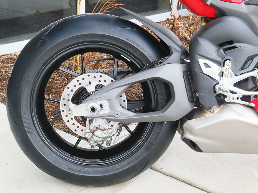 CHASSISBased on Ducati Corse experience, the chassis layout aims to improve track performance, or rather faster lap times that are achieved with less effort and can be more consistently replicated by both amateurs and professionals. Thanks to solutions such as the Ducati Hollow Symmetrical Swingarm and Front Frame with reduced lateral stiffness, the new Panigale V4 is quicker through the most delicate phases of track riding.