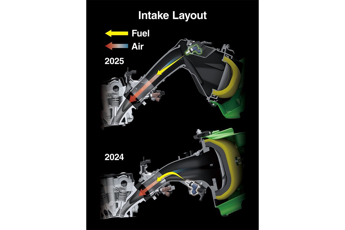 - NEW cylinder head with straight exhaust port and centre exhaust