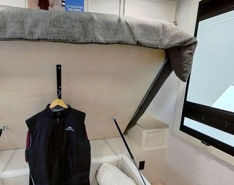 - MaxSpace Split-Level Wardrobe™ with a hanging closet and adjustable shelves under the bed, and a full floor-to-ceiling wardrobe with drawers, maximizing flexibility and storage space