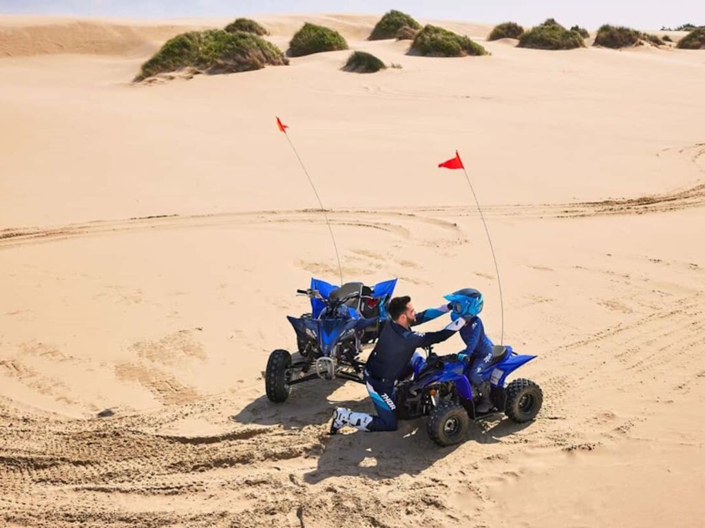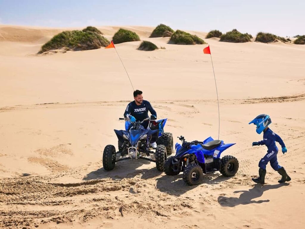 To help young beginners grow into accomplished ATV riders, the YFZ50 includes a two-stage rpm limiter, as well as a throttle limiter to match engine performance to the rider’s advancing skill level. A tethered switch also allows parents to closely monitor new riders and cut power to the engine if necessary, so young enthusiasts can safely learn the basics of ATV control.