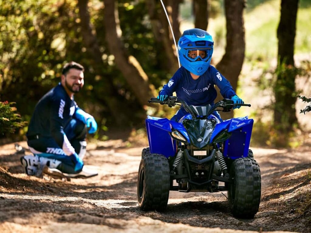 The YFZ50 is engineered as the ideal starting point for aspiring ATV riders ages 6 and up. With a low-maintenance 49cc engine tuned to develop responsive, controllable performance and engine limiters with a power cut-off tether switch for safety, it\'s easy for young riders to feel comfortable as they grow their skills.