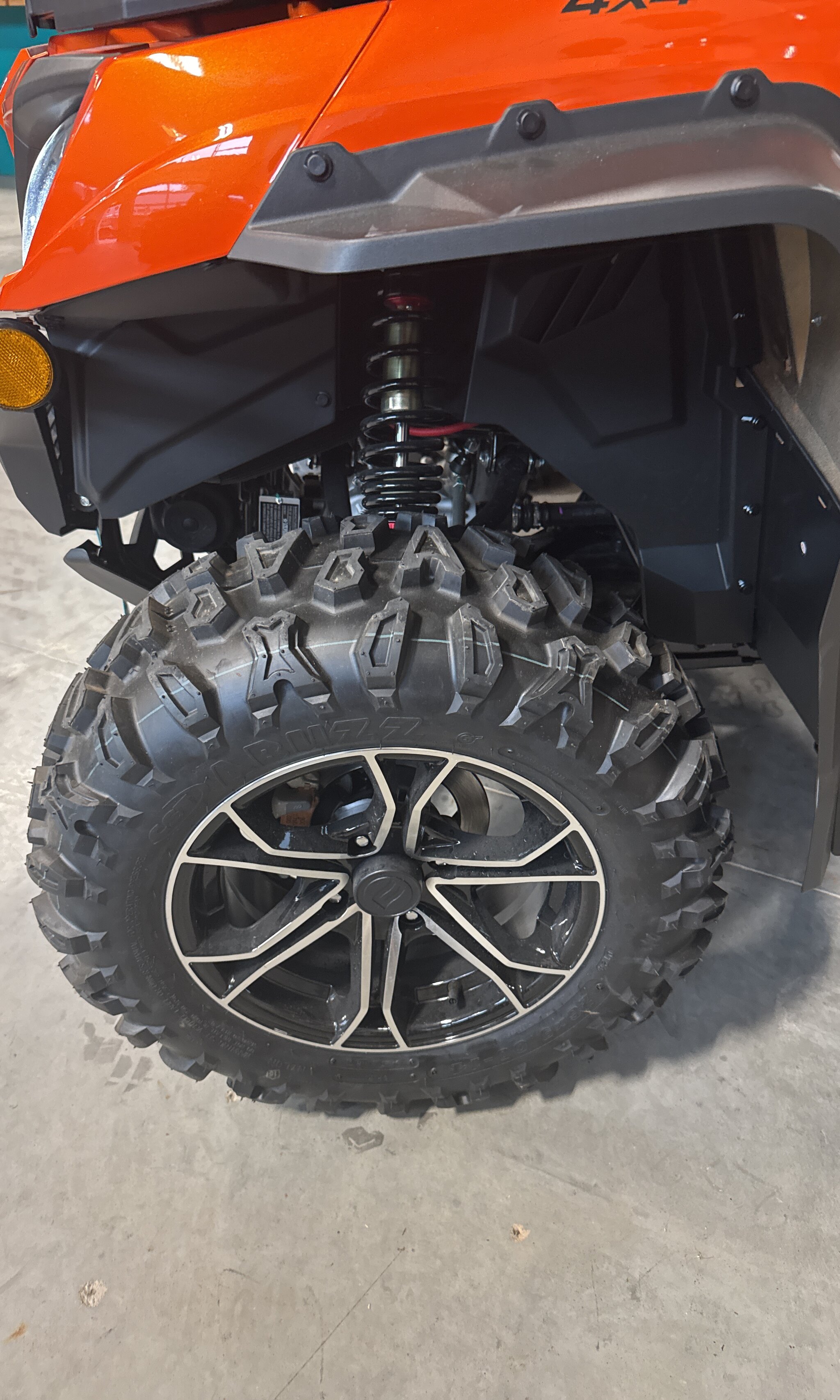Engine Type: V-Twin cylinder, 4-strokes, 8-valves Displacement: 800 cc Bore x Stroke: 91 x 61,5 mm (3.6 x 2.4 in.) Engine Cooling: Liquid Fuel System: Fuel injected engine Front Suspension: Double A-arm, independent suspension, gas shock absorber with adjustable rebound/compression Front Travel: 180 mm (7 in.) Front Tires: AT 26 x 9-14 Rear Suspension: Independent trailing arm rear, fully adjustable gas shocks Rear Travel: 190 mm (7.4 in.) Rear Tires: AT 26 x 11-14 Dry Weight: 472 kg (1040 lb.) Rear Rack Capacity: 20 kg (44 lb.) / 40 kg (88 lb.) Fuel Capacity: 28 L (7.3 gal) Ground Clearance: 285 mm (11 in.) Wheelbase: 1480 mm (58 in.) Drive Train: 2WD / 4WD, electric locking differential