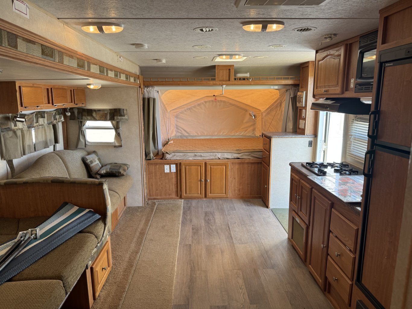 We’re excited for our 2009 Forest River travel trailer! Equipped with 2 queen-sized bed along with a dinette, bathroom, induction stove, fridge, microwave, heater and AC, this rig is lightweight for easy towing while having all the amenities you would need.