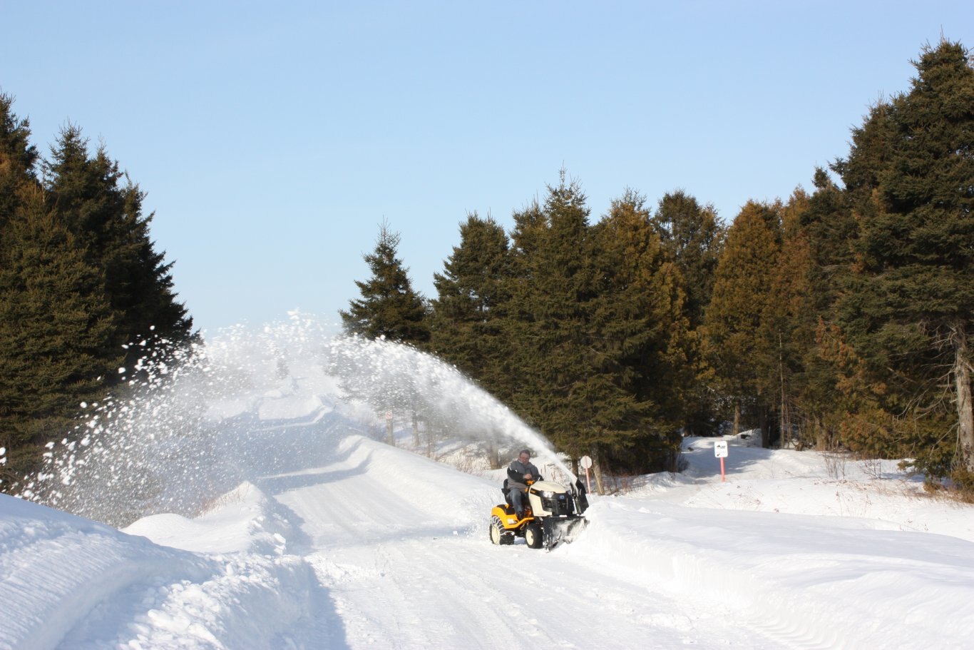 - Engage the snowblower by activating the same system as the mower deck of the tractor