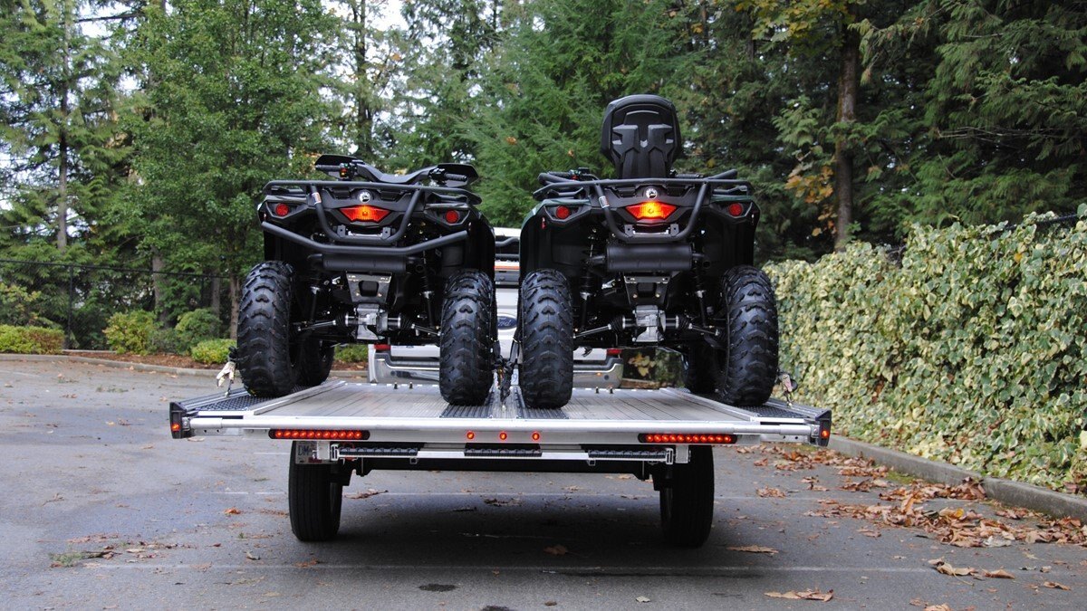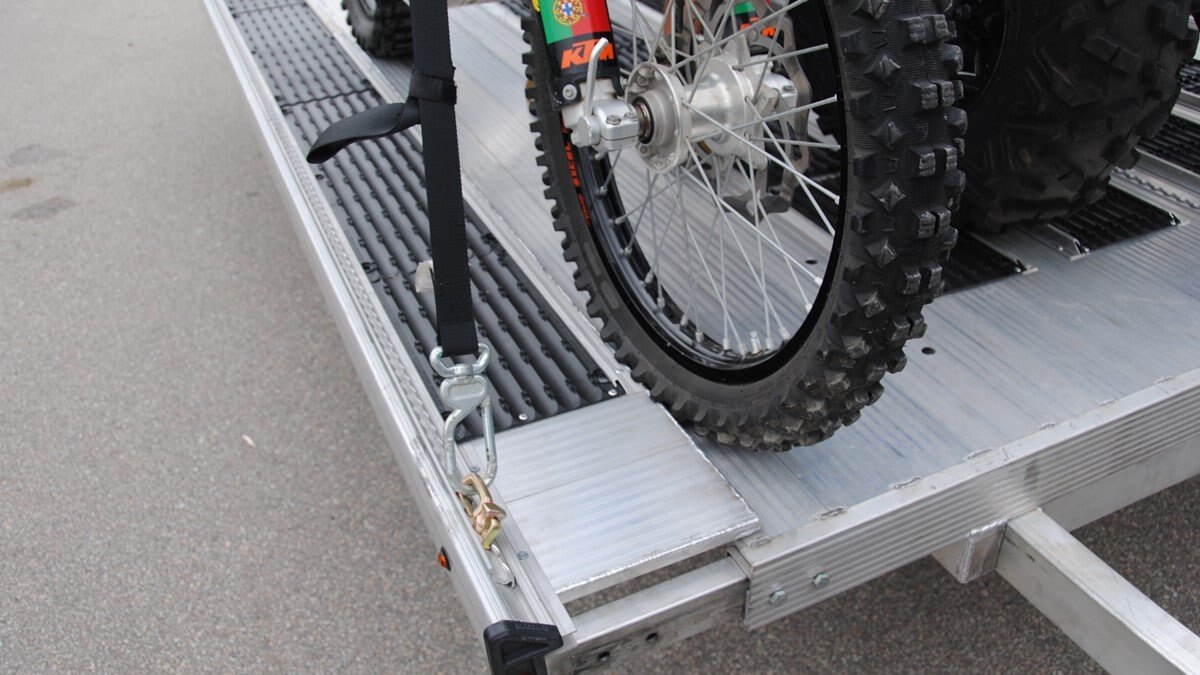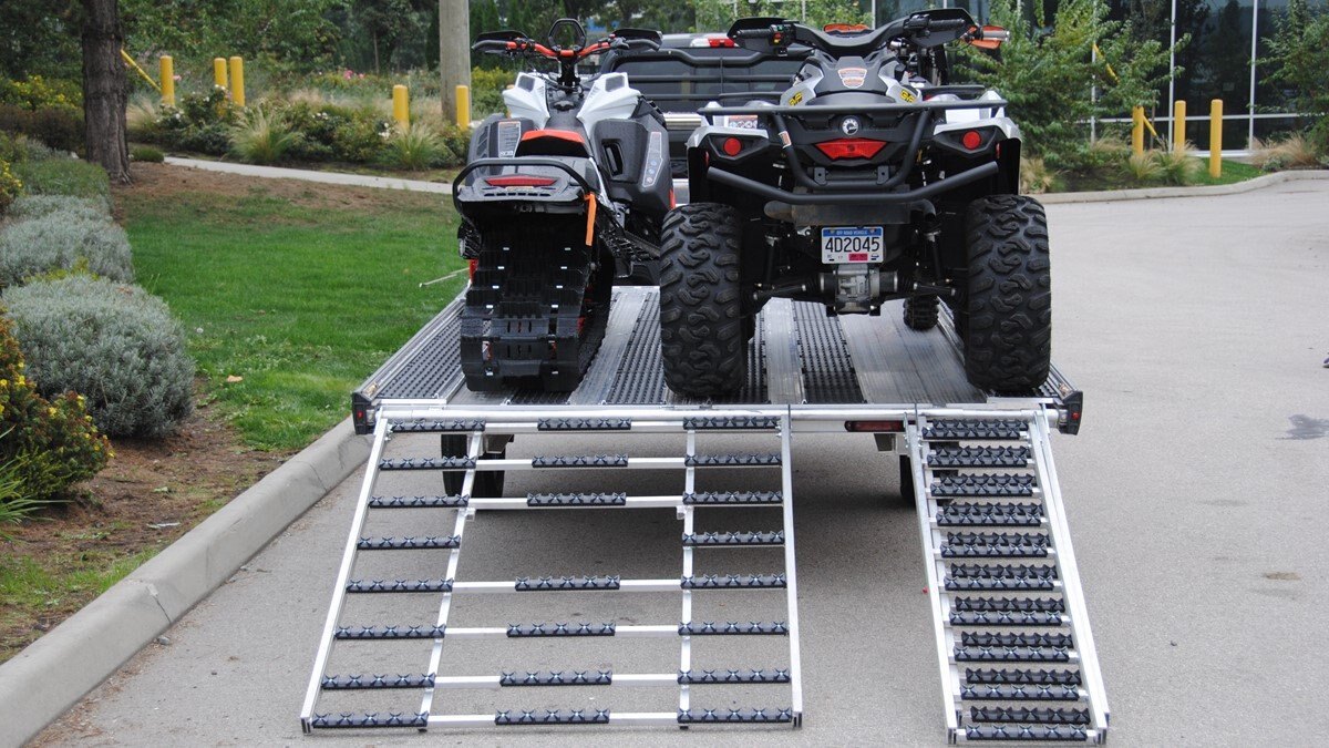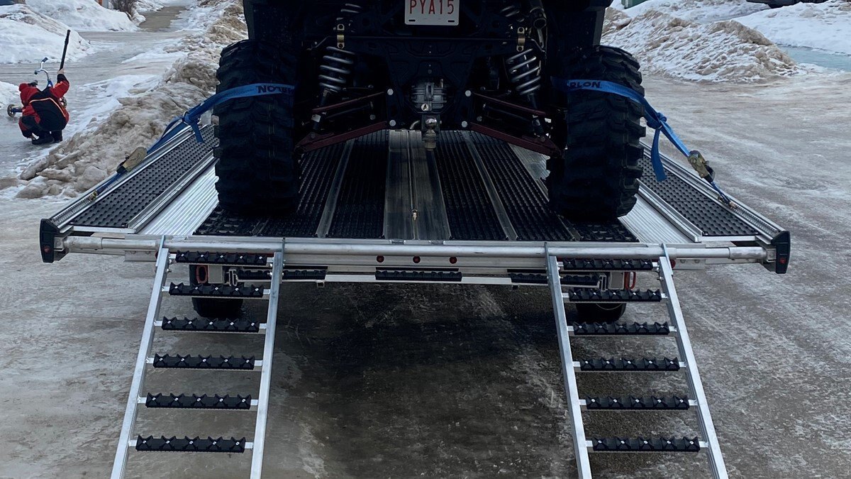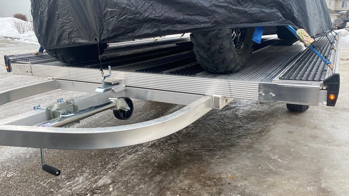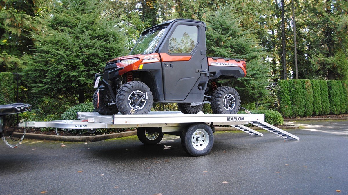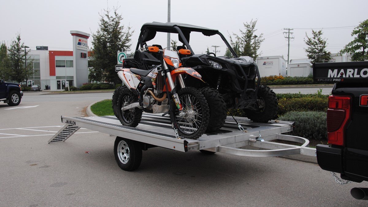 The Marlon New Product development team sat down with the goal of developing a trailer that would do more, could be used for Multiple uses and could be used in Multiple seasons. Development code name was MultiFunctional Trailer. We wanted it lite so it can be towed behind a selection of vehicles to haul your sled, ATV, Trailer SxS, stack of wood …………that’s why it is all aluminum! The sled industry needs a wide trailer for the larger trail machines and a narrow trailer for mountain sleds. We used our experiences and knowledge from 20+ year’s in the sled deck industry and adapted the slide out sides to work on our new Multifunctional two place trailers. Tilt trailer or drive on back off – it’s your call our trailer does both! We also developed a drive on drive off trailer and did but then asked why? Why because the drive on drive off trailer was brought to the industry many years ago when sleds did not have reverse, It adds cost for the additional 2’ of “V nose” decking that is not used and takes up more valuable storage area. We studied users and found that most now reverse off of their trailer because there is no room to the side of their truck in parking lots, we also found they need the rear ramp to drive back on so why not just back off. Why not spend the extra time taking down and putting up the front ramps when you could be going for a beer after a great day exploring! But we wanted more…. And we wanted to be the best and to grow the declining sled trailer business so we kept this in mind and looked for things we could do from the ground up. Extruded sides which you may recognize from our sled decks. With tie down points down the entire side at a 45 degree angle allowing you to tie down dirt bikes, various items you may carry from the lumber yard or to the dump or your ATV or side by side using our tire tie downs. Center extrusion allowing you to tie the center of the trailer items like dirt bikes and ATV’s, lumber and things that need to get to the cottage. Slide out sides as mentioned earlier and aluminum decking. The pure strength of the aluminum extrusion vs. a thin sheet of plywood allows you to tie down items such as ATV’s and not worry about the tires sinking into the plywood and straps coming loose while driving in a thunderstorm – confident that there is no plywood stretching because it has become wet. Our trailer has been designed for all seasons and to meet your needs. It can be used for your current and future toys! |