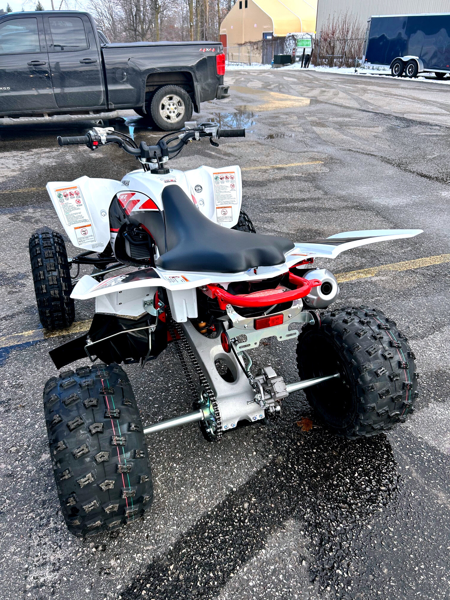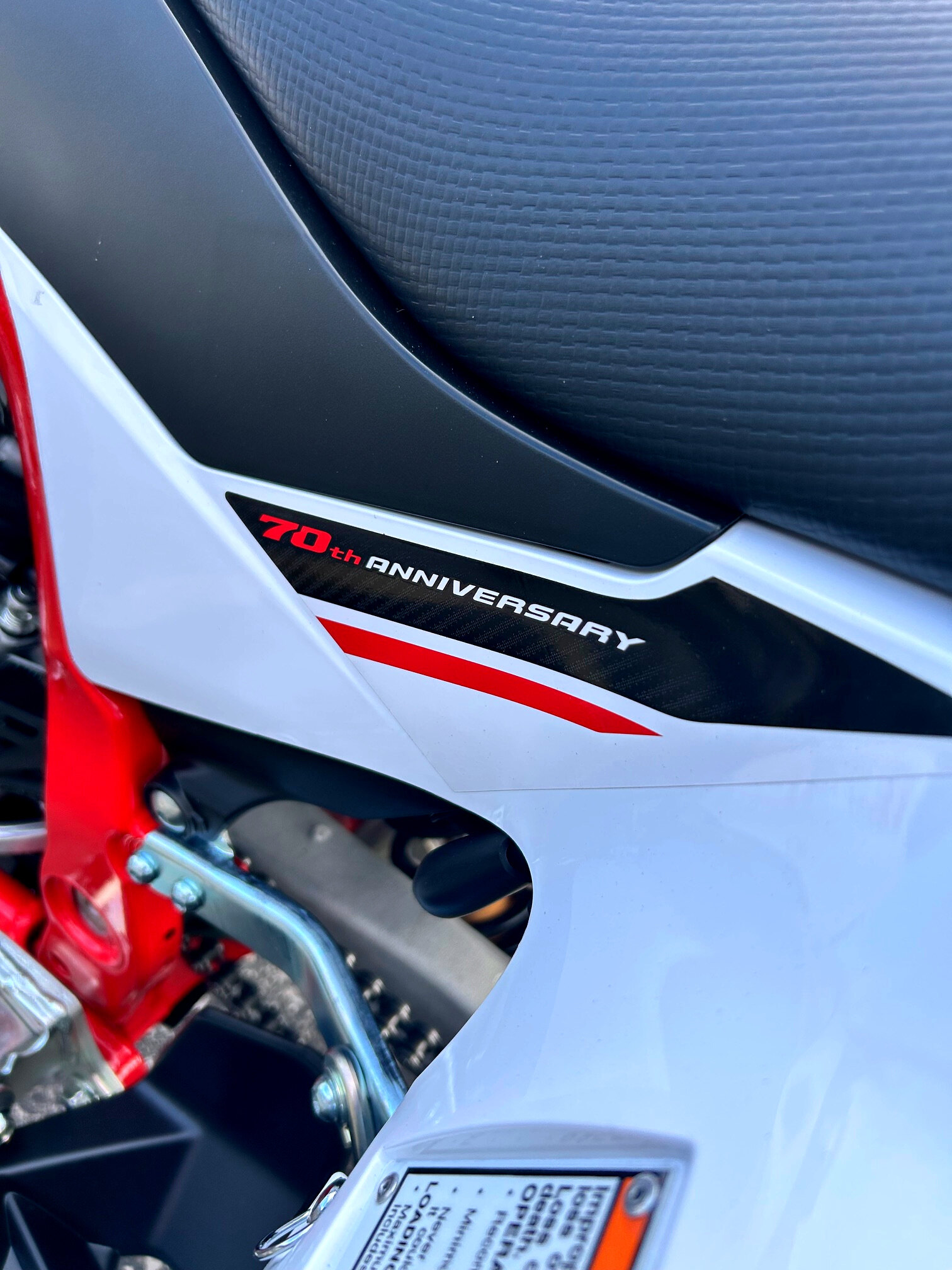 In commemoration of seven decades of motorsports excellence, Yamaha is proud to introduce the new 2026 YFZ450R SE 70th Anniversary Edition model. This model will come adorned in a modern take on Yamaha’s iconic white and red speed block livery popular in the late 1990’s –to- early 2000’s used on the YZ 4-stroke motocross bikes and R-Series superbikes. The graphics combined with the sleek, aggressive YFZ bodywork for a standout look sure to draw attention from those that admire Yamaha’s legacy in motorsports.