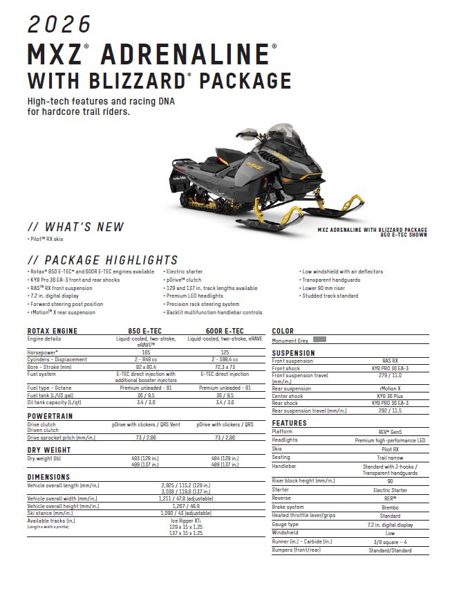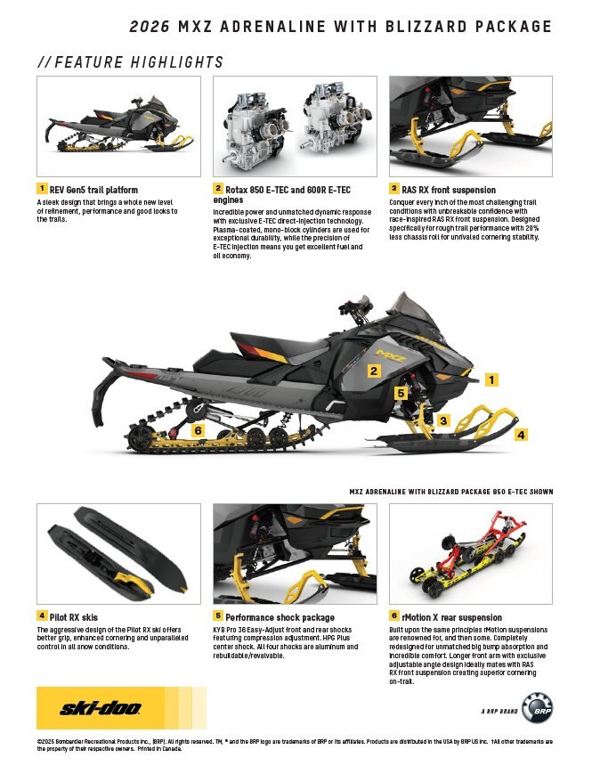 2026 Ski-Doo MXZ Adrenaline w/ Blizzard Package 129 600R E-TEC Ice Ripper XT 1.25" E.S.
