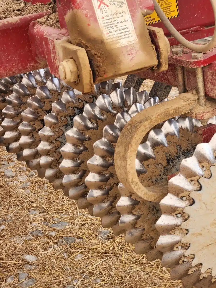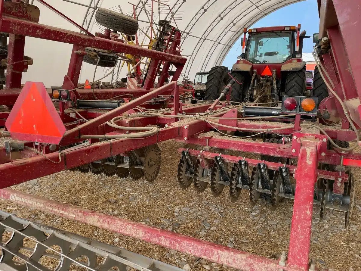 25 Ft Vertical Tillage, Adjustable gang angle 0-4-8-12-16 degrees with 14 inch single Spiral basket. Rear Jack, Rear Hitch with Hydraulics