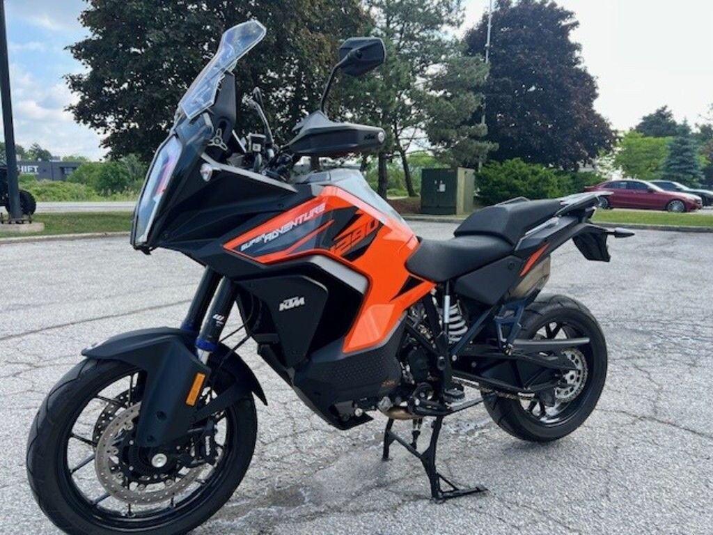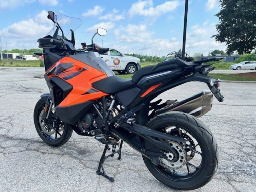 Covering ground quickly and effortlessly is what the KTM 1290 SUPER ADVENTURE S is made for. An Adventure-specced 1,301 cc V-Twin means that entire cross-country journeys are dispatched easily, while Adaptive Cruise Control and Semi-active Suspension together with reworked rider-focussed ergonomics and technology bring agility and long distance comfort to an entirely new level. It\'s a bold claim, but we\'ll make it - the KTM 1290 SUPER ADVENTURE S is the new benchmark.
