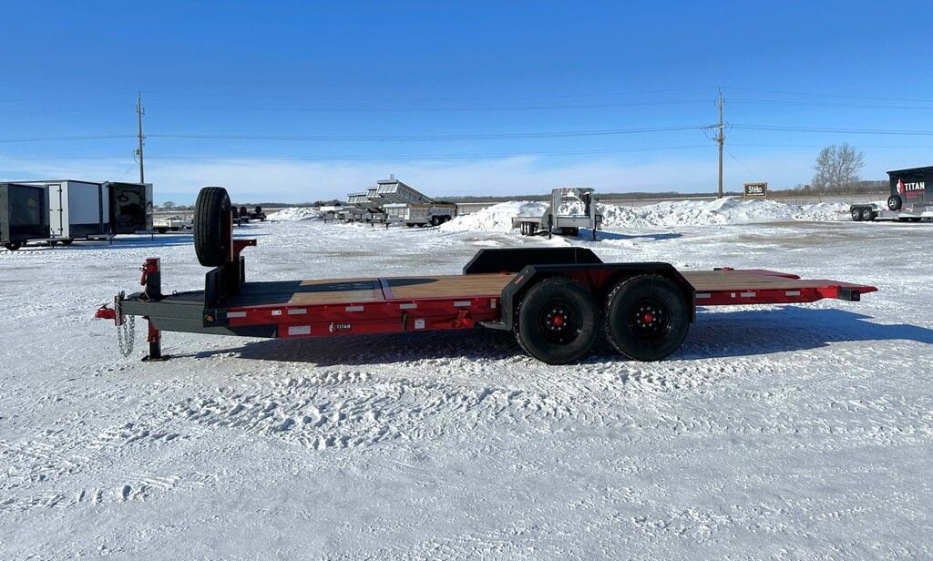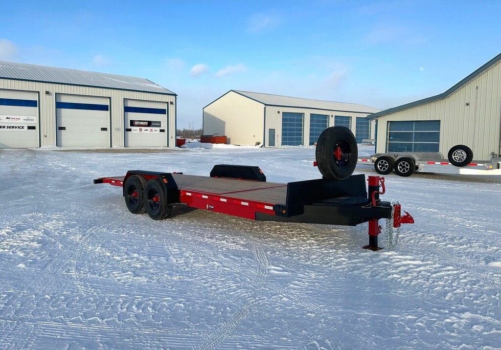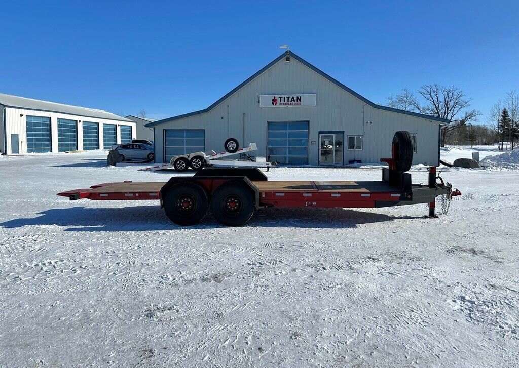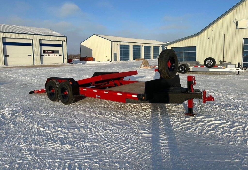 The Precision Trailers Heavy Duty Tilting Deck offers models of various sizes from the partial 60/40, to the full tilting deck running either electric over hydraulic power packs, or a free flowing valve controlled cylinder. The tilting deck series provides the same high quality tubular steel frame and 3\" 16 O/C and high tensile i-beam crossmembers for increased strength and durability. This trailer, like all Precision trailers, uses Voltflex wiring entirely sealed off inside the tubular frame. The trailer comes with Dexter\'s more durable torsion axles, Carlisle wheels and radial tires are specifically selected for each model. Offering a one-side locking and unlocking system, the tilting deck allows for smooth transition from the ground to the deck for those hard to load items. This trailer is a must for any construction worker.