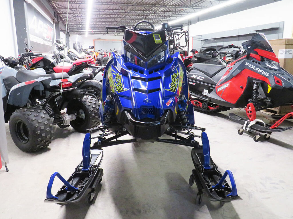 Polaris' powerful mountain sled with surprising manners on regular old trails despite its length, this 850 RMK is in very nice condition with low kilometers.