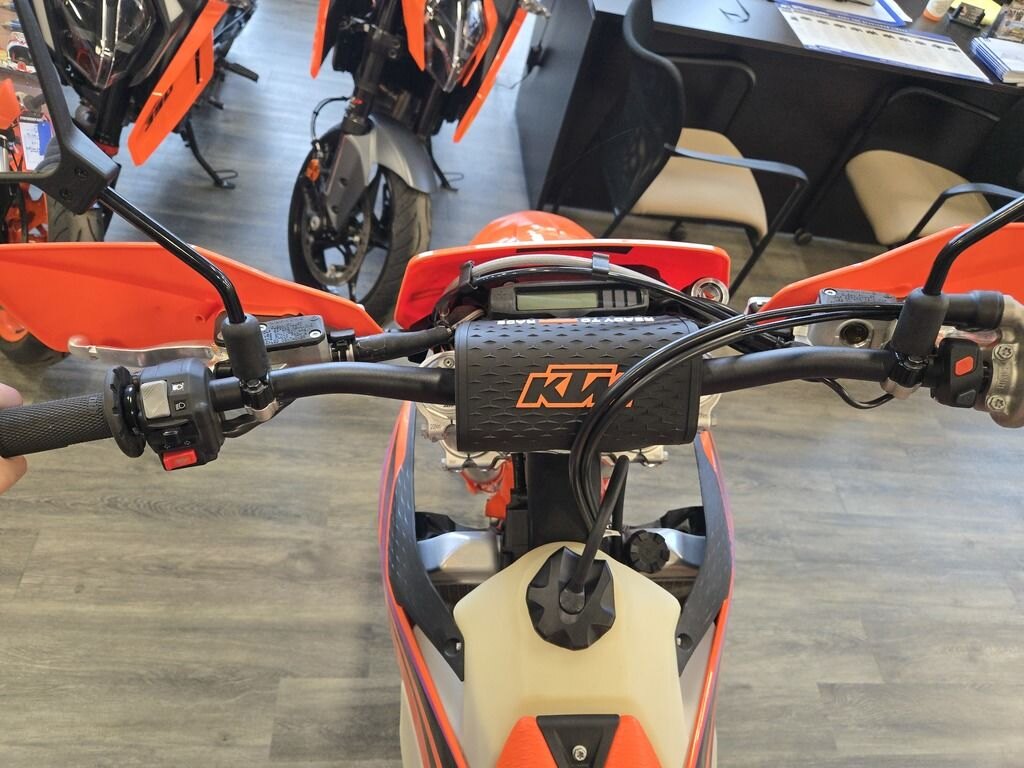 SETTING THE SAGGetting READY TO RACE has never been easier. Thanks in part to its all-new suspension, the 2024 KTM EXC-F range boasts totally tool-free suspension setup at both ends. At the rear, our legendary, race-winning PDS technology features an all-new shock absorber design with hand-adjustable dual compression controls. This allows riders to adjust high- and low-speed settings in a matter of seconds. On the front, the forks are also easily adjusted thanks to hand-adjustable clickers on the bottom of the fork and on the fork top cap, making changing settings on the fly as easy as twisting the throttle.
