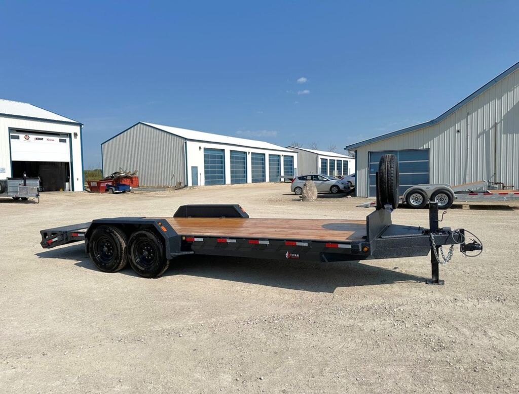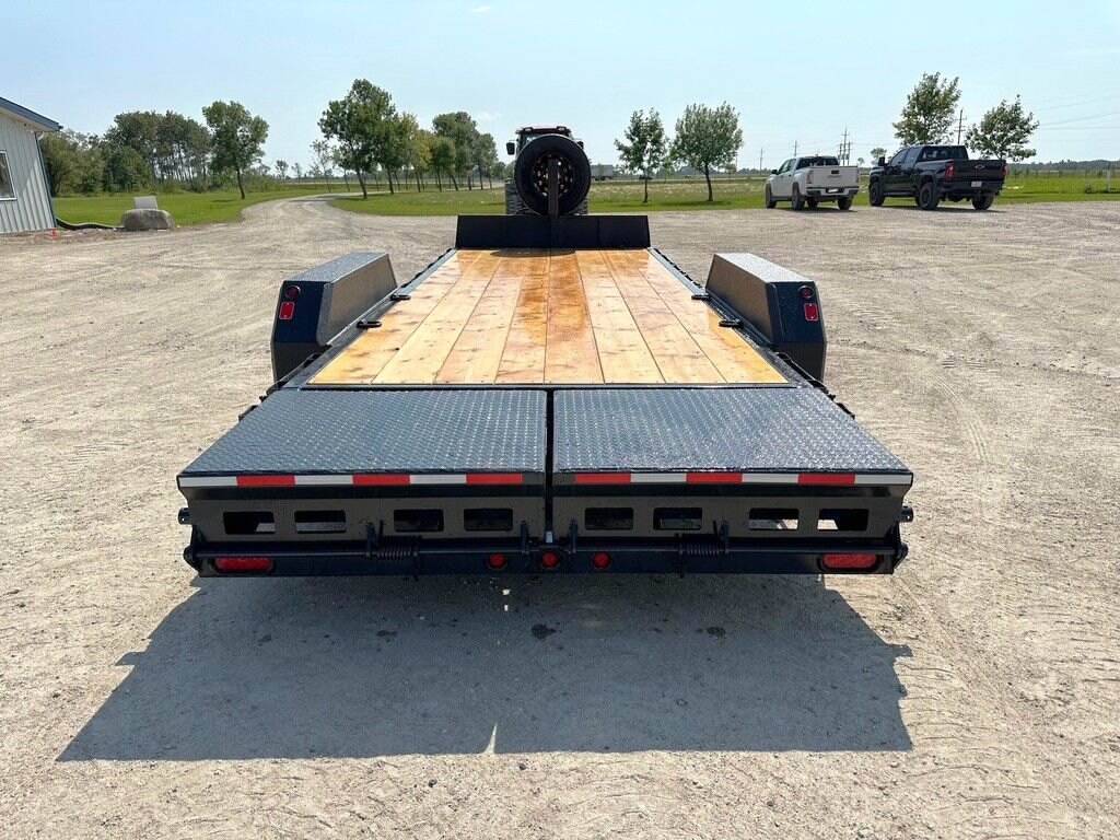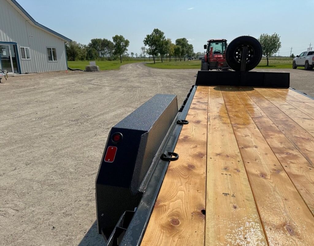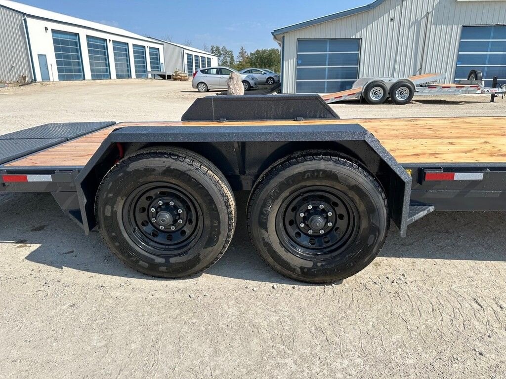Precision Trailers\' Heavy Duty Equipment bumper pull series comes with our hassle-free spring assisted mini beavertail flip down ramps. These trailers are built for Canada\'s extreme climate and to last in the toughest terrain, providing you with a high-quality tubular steel frame and 3 - 16 O/C high tensile i-beam cross members for increased strength and durability. The hitch tubing is doubled up for extra strength and a deeper a-frame toolbox. This trailer series, like all our trailers, uses Voltflex wiring harnesses that are fully sealed off inside the tubular frame. this trailer has Dexter\'s more durable Torsion Axles, Carlisle wheels and radial tires are selected for each model. This trailer is a must for any construction worker.