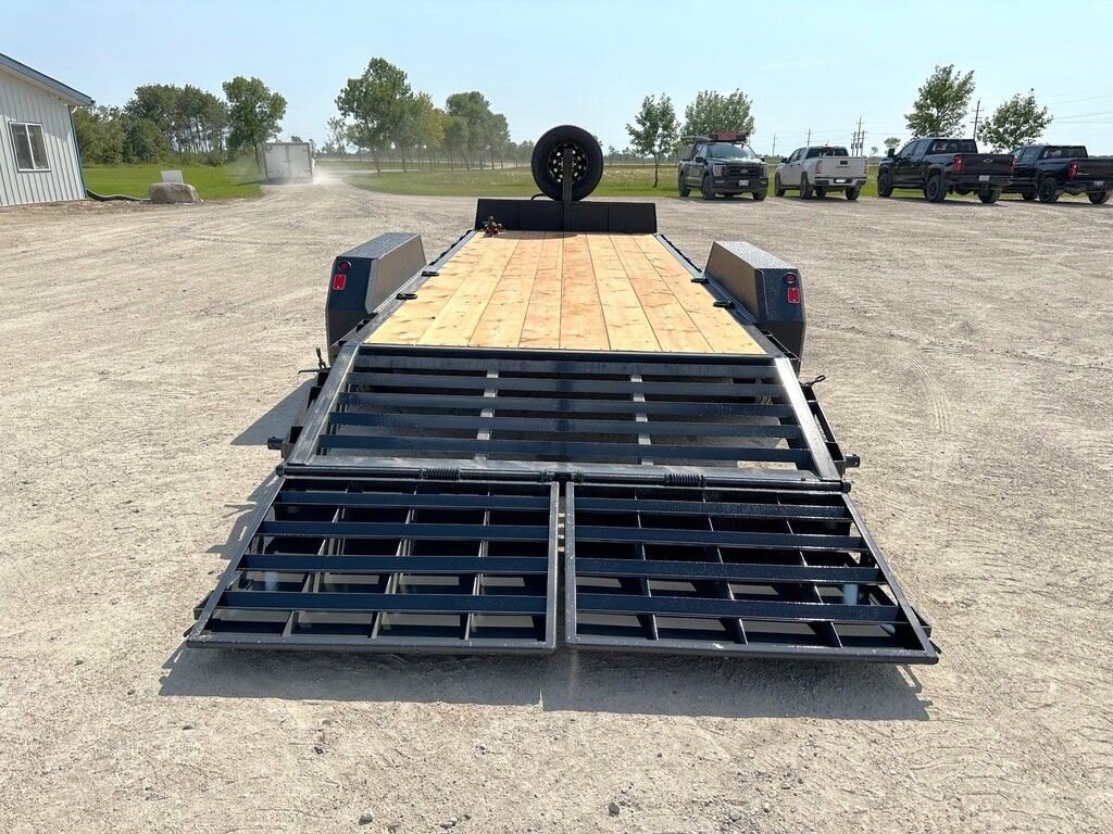 Precision Trailers' Heavy Duty Equipment bumper pull series comes with our hassle-free spring assisted mini beavertail flip down ramps. These trailers are built for Canada's extreme climate and to last in the toughest terrain, providing you with a high-quality tubular steel frame and 3” - 16” O/C high tensile i-beam cross members for increased strength and durability. The hitch tubing is doubled up for extra strength and a deeper a-frame toolbox. This trailer series, like all our trailers, uses Voltflex wiring harnesses that are fully sealed off inside the tubular frame. this trailer has Dexter's more durable Torsion Axles, Carlisle wheels and radial tires are selected for each model. This trailer is a must for any construction worker.