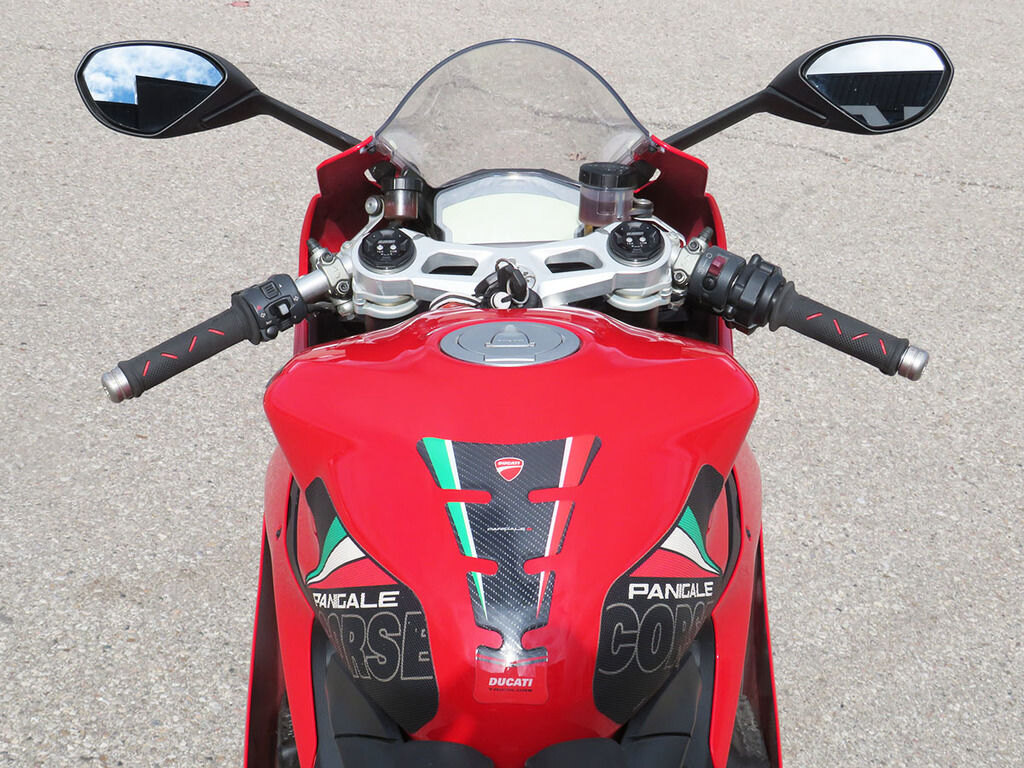 The always impressive 899 Panigale looking good with low kilometers. In stock condition other than the tank protectors and grip pads, this is a wonderful way to join the ranks of Ducatisti with an exotic supersport at a great price!