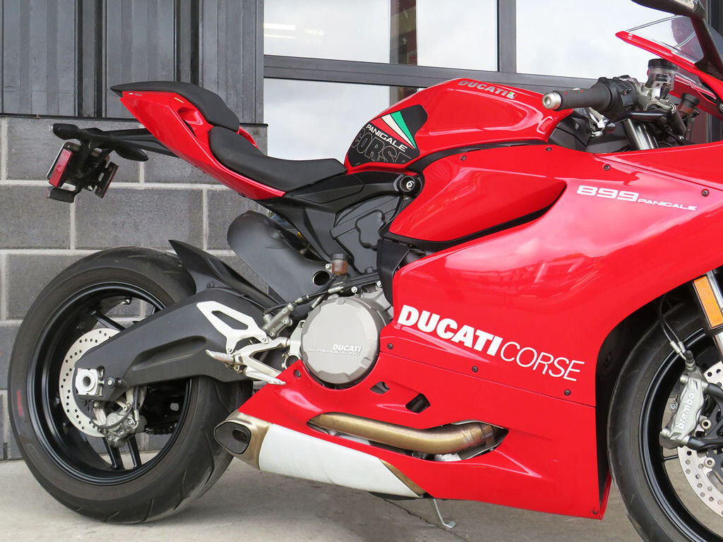 The revolutionary technology found in the Monoscocca frame and Superquadro engine, 148 HP delivered with incredible lightness and unprecedented agility, the unmistakable design, Ducati Quick Shift and ABS fitted as standard. This all ensures that the 899 Panigale is just the bike to give a Ducati Superbike adrenalin rush, both on the track and on the road.
