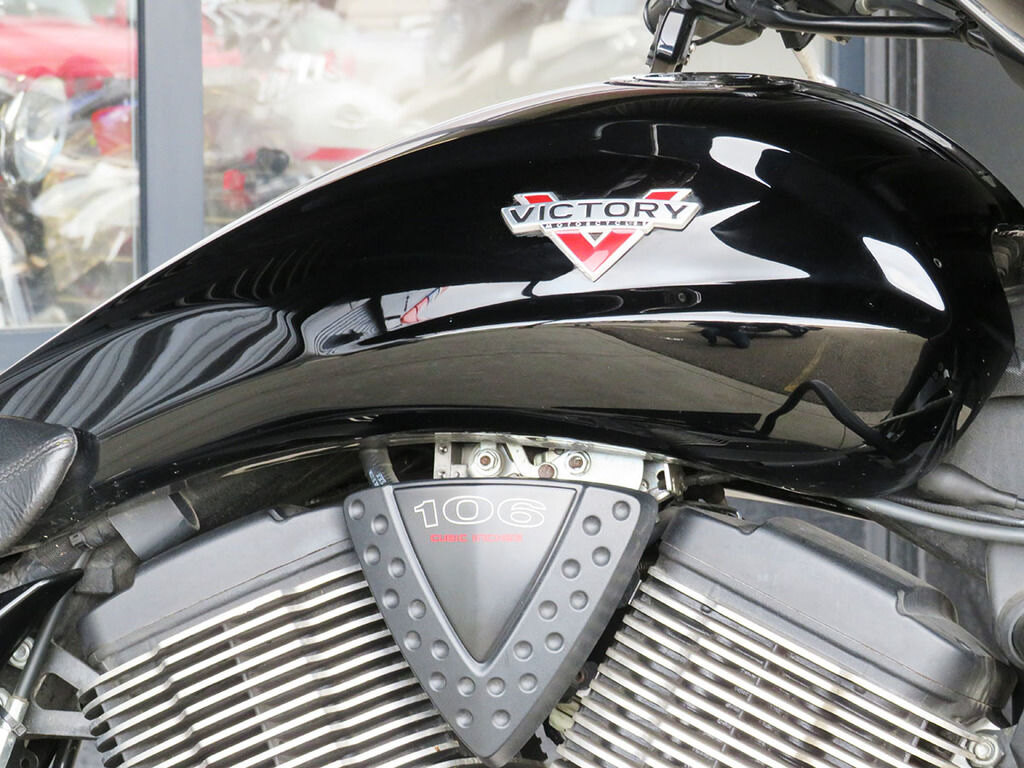 With the Victory Cross Country 8-Ball, youve got attitude and power. The 106-ci Victory Freedom V-Twin delivers 106 ft-lb of torque, and its a smooth, efficient engine counter-balanced and fuel-injected. The 6th gear overdrive of the Victory 6-speed transmission drops the RPMs and delivers the smooth ride youre looking for.