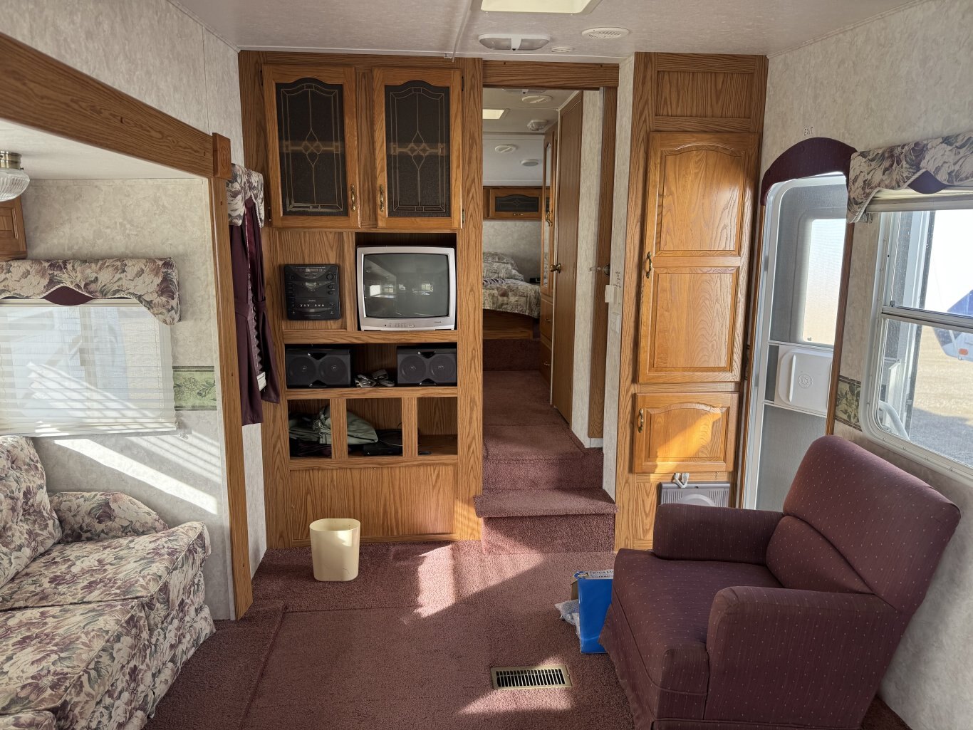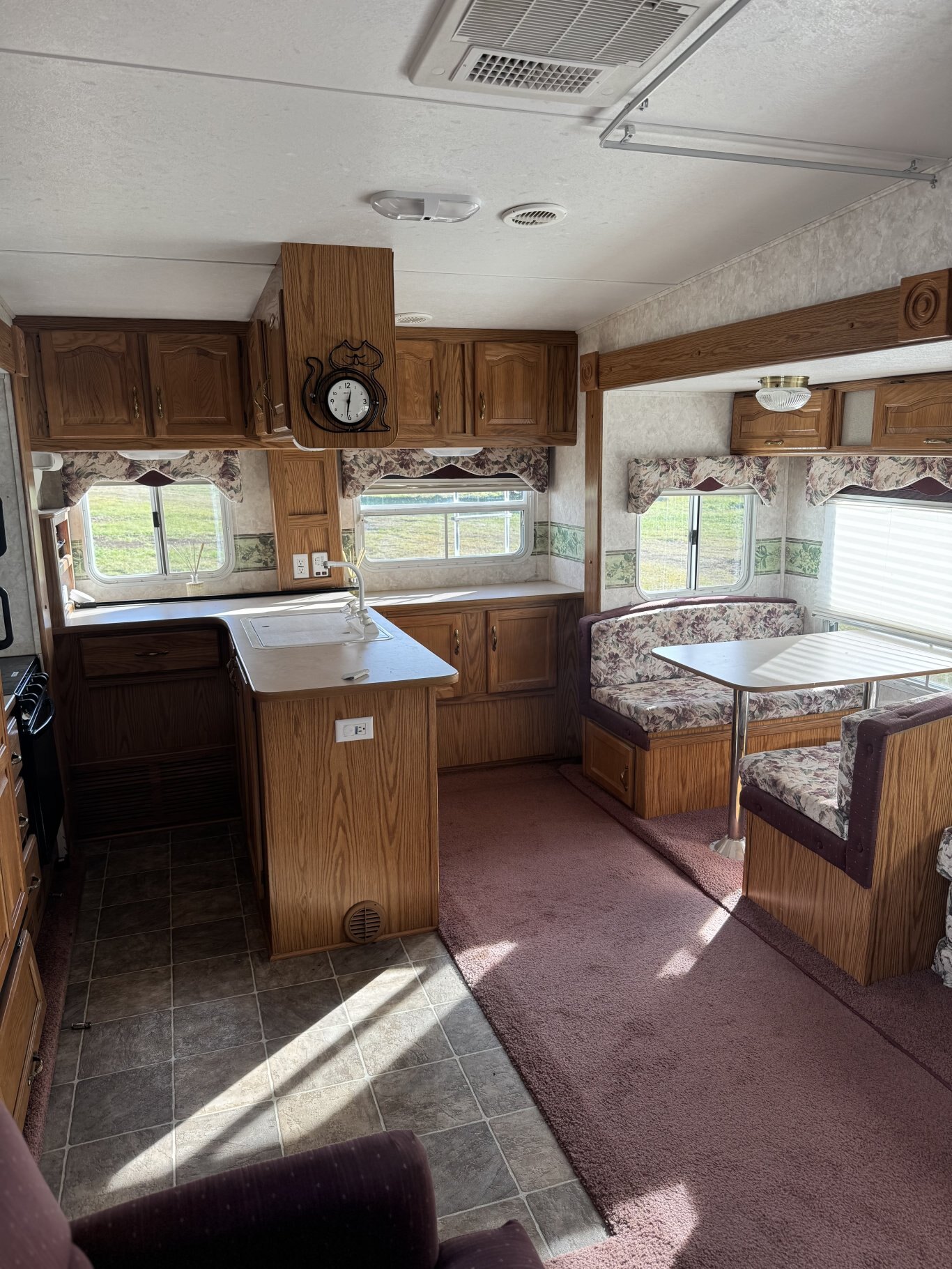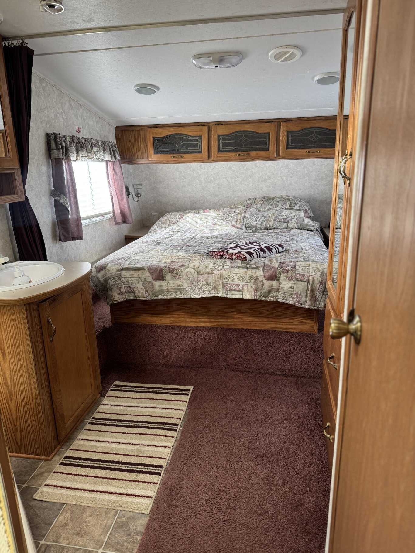This 2004 Keystone Cougar has the perfect large rear kitcken with a oven/stove duo and natural lighting from the rear facing windows, along with just the right amount of kitchen storage and dinnet table! moving towards the cozy living room youll find an entertainment center along with more storage that is paired with a pullout couch and a single lazy boy chair! now lets check out the bed/bathroom combo! you have a double step up enterance where to your left you will find your rippled glass corner shower with a skylight along with a vanity/medicine cabnet set up! to your right you will fine your private rest room! now lets talk about the short queen master bed with over head storage along with side tables and a mirrored wardrobe! outside you will see a well taken care of trailer with next to no sun damage, an outdoor shower, storage, and this trailer also comes with extra scissor jacks for extra stability! this beauty really check all the box!