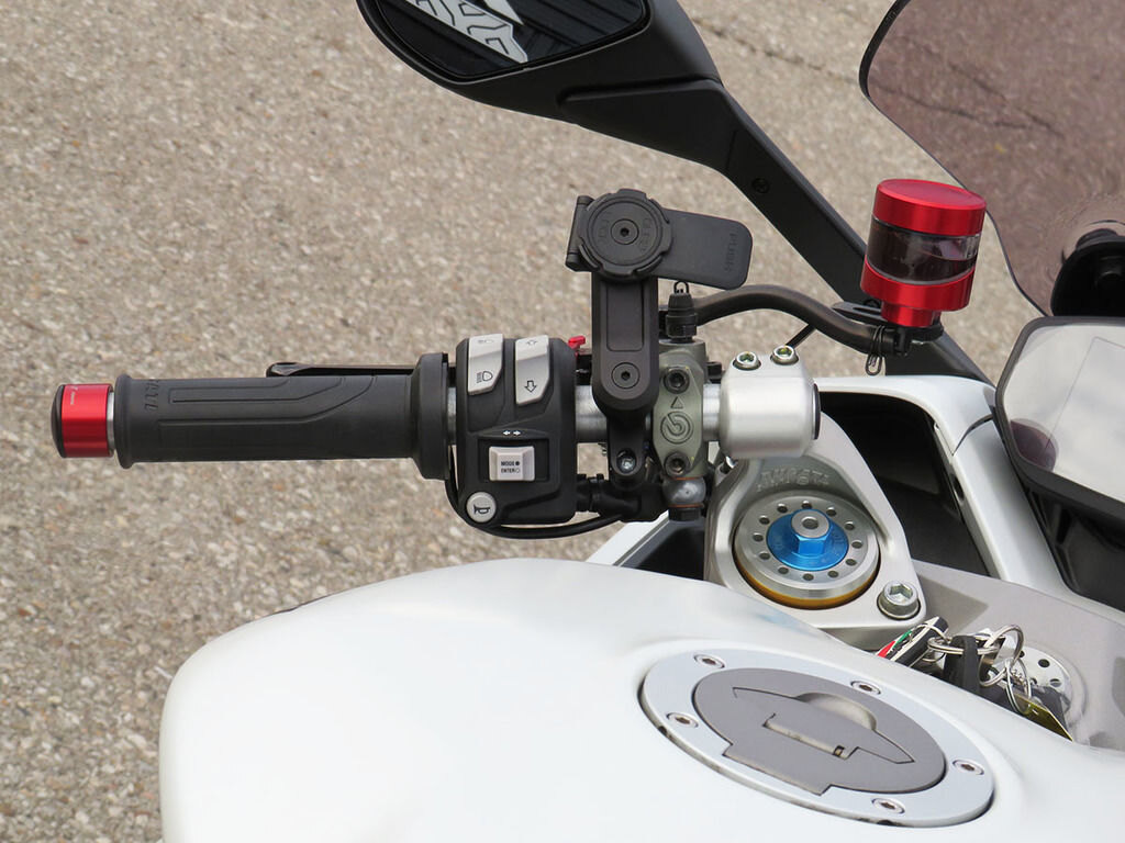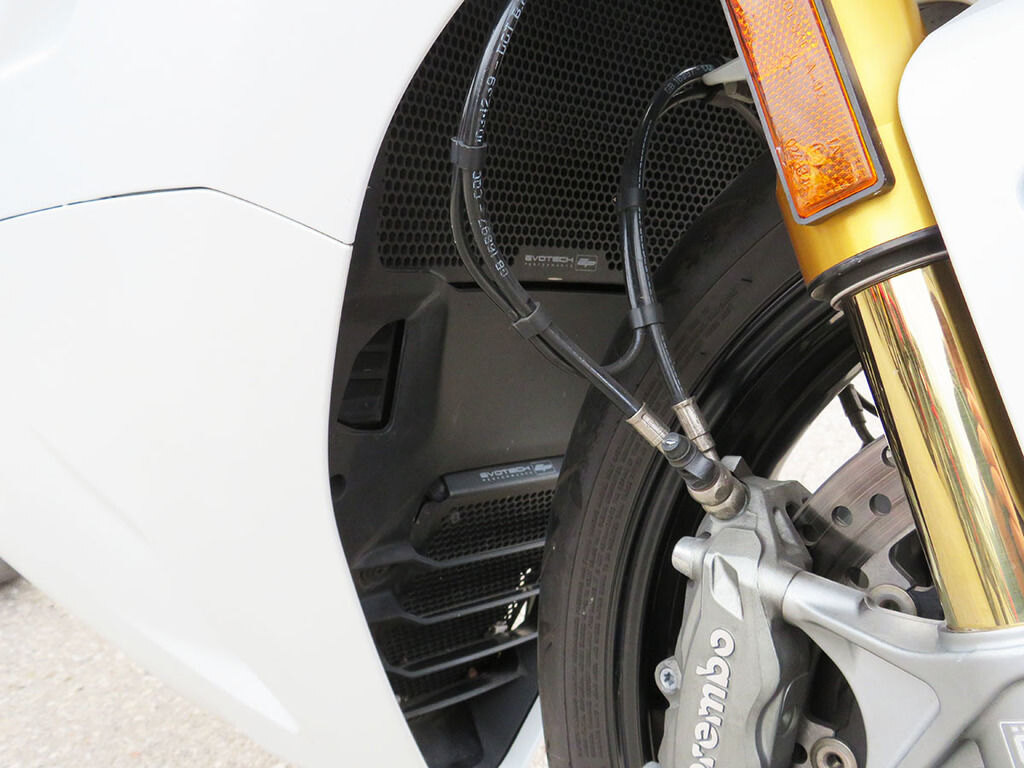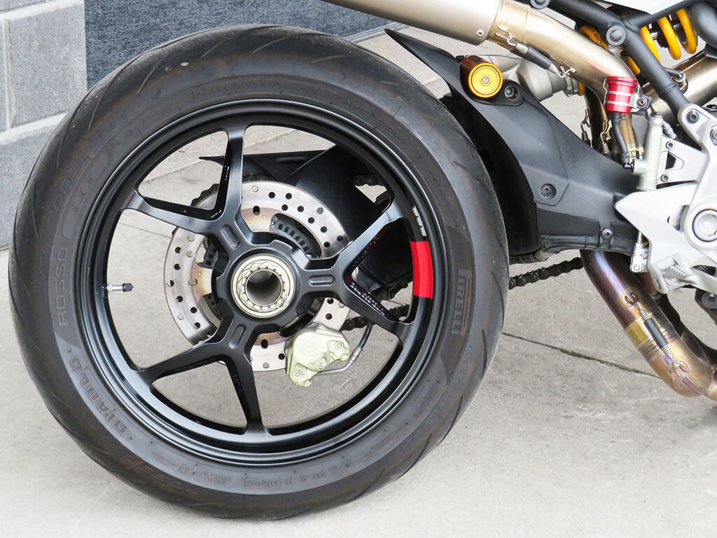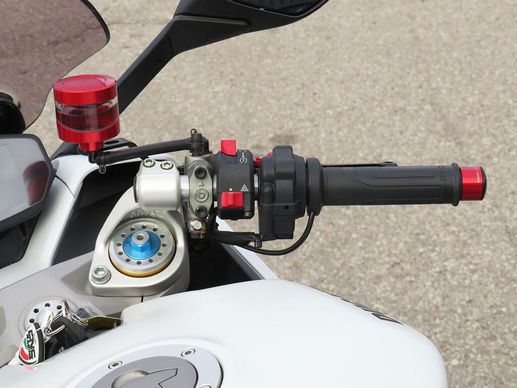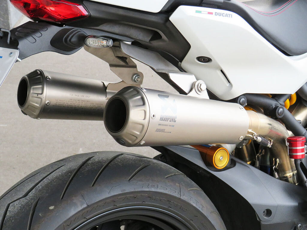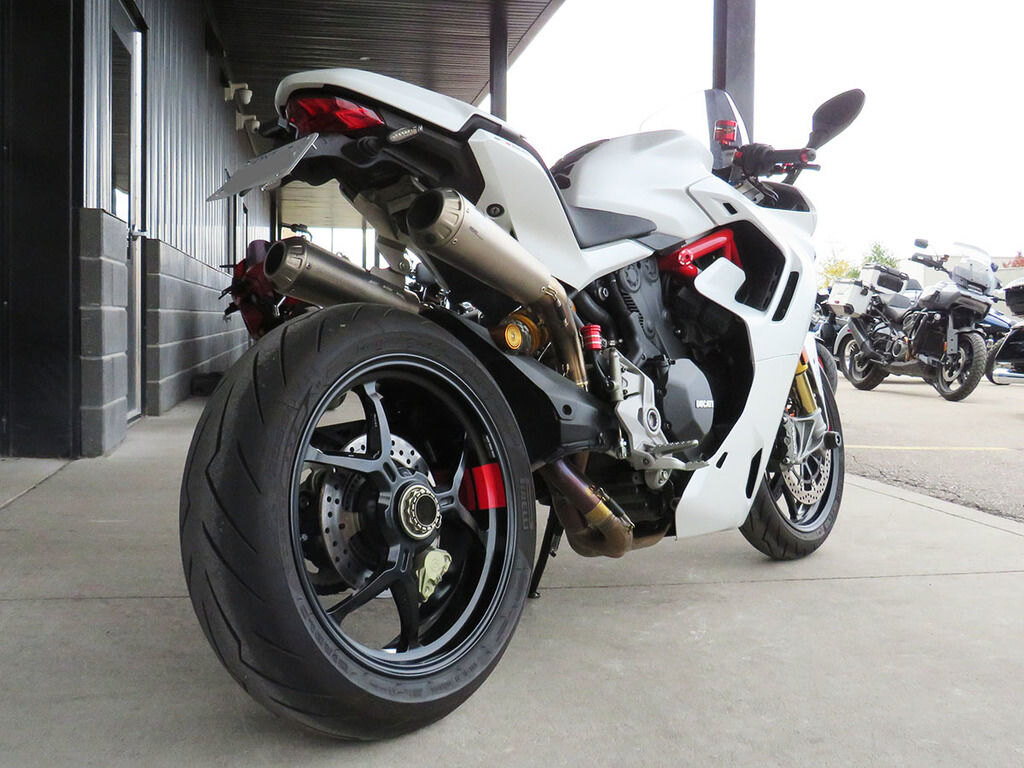 With it\'s single-sided swingarm, Ohlins suspension, torquey L-twin, and design lines that are 100% Ducati, we could understand someone\'s disbelief when they are told that the Supersport S makes a surprisingly great daily rider with ergonomics that will make you regret having to stop for fuel. This Supersport will add to that disbelief with added accessories that increase the sporty side of this popular bike\'s persona. These include a full Akrapovic titanium twin exhaust, Evotech rad guards, levers, and tail tidy, Rizoma master cylinders, bar-ends, and a tinted windscreen. If the no compromise appeal of a Supersport has been on your wishlist, this is the one you want!