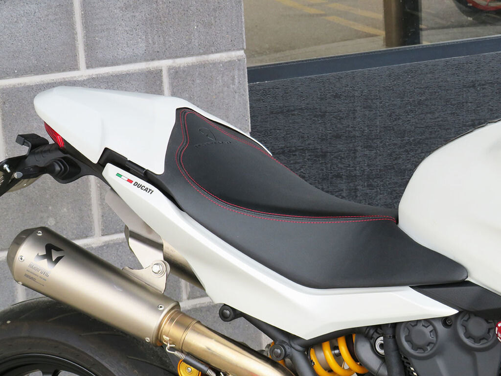 With it's single-sided swingarm, Ohlins suspension, torquey L-twin, and design lines that are 100% Ducati, we could understand someone's disbelief when they are told that the Supersport S makes a surprisingly great daily rider with ergonomics that will make you regret having to stop for fuel. This Supersport will add to that disbelief with added accessories that increase the sporty side of this popular bike's persona. These include a full Akrapovic titanium twin exhaust, Evotech rad guards, levers, and tail tidy, Rizoma master cylinders, bar-ends, and a tinted windscreen. If the no compromise appeal of a Supersport has been on your wishlist, this is the one you want!