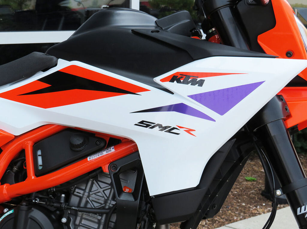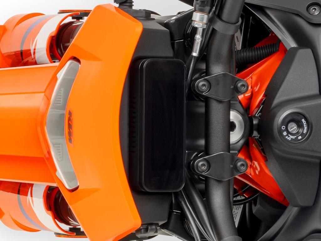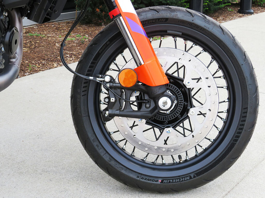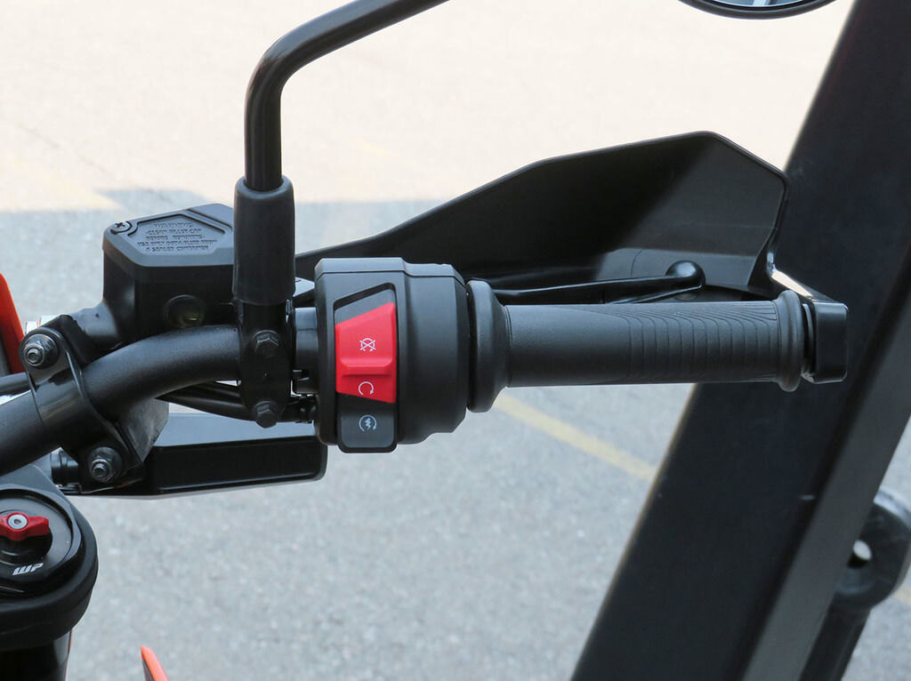 CLUTCH IN, REVS UP!Finding that perfect balance when attacking your favorite stretch of asphalt or for added comfort around town is easy, thanks to the KTM 390 SMC R\'s adjustable suspension, brake and clutch levers, and footrests - not to mention a complete PowerPart catalog filled with performance and style enhancing add-ons.