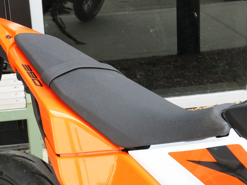 HIT THE ROADWith an ergo-triangle inspired by its bigger brother, the KTM 690 SMC R, the KTM 390 SMC R features an aggressive handlebar shape, upright seating angle, and generous space for easy on-bike mobility.