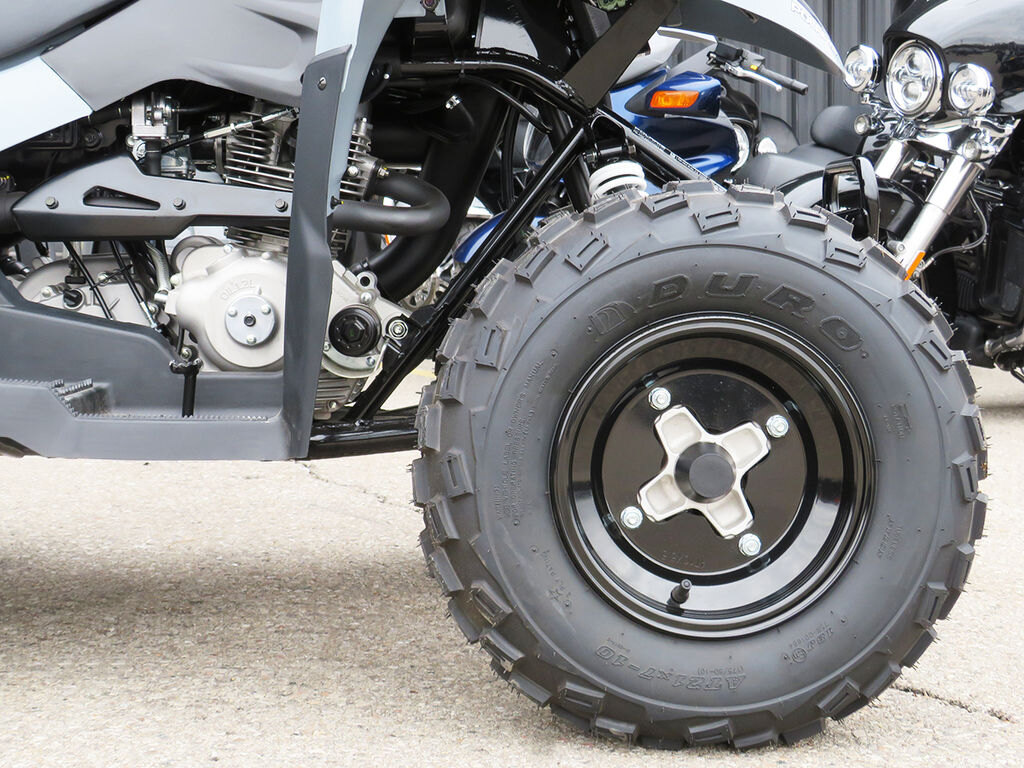 Featuring 21" front tires, and 20" rear tires, for traction, stability and handling.