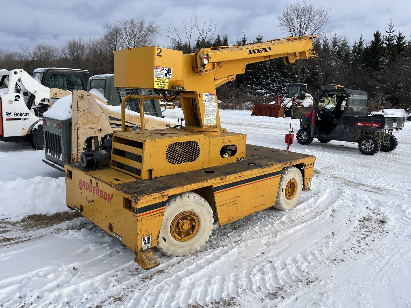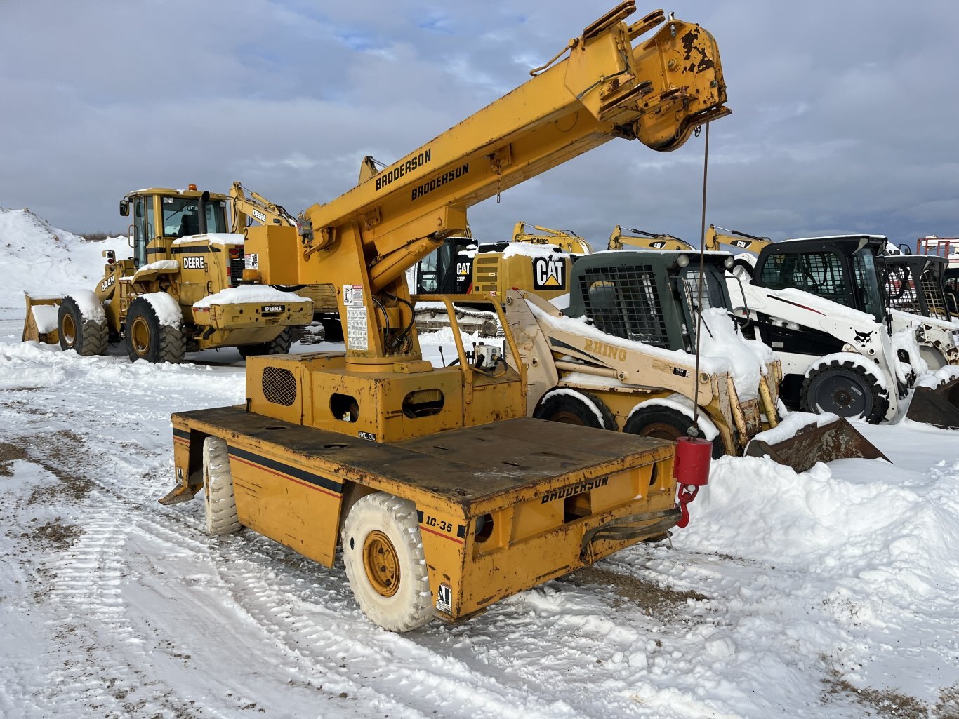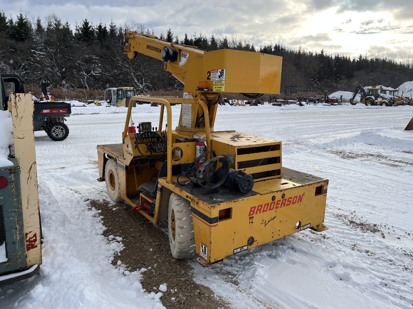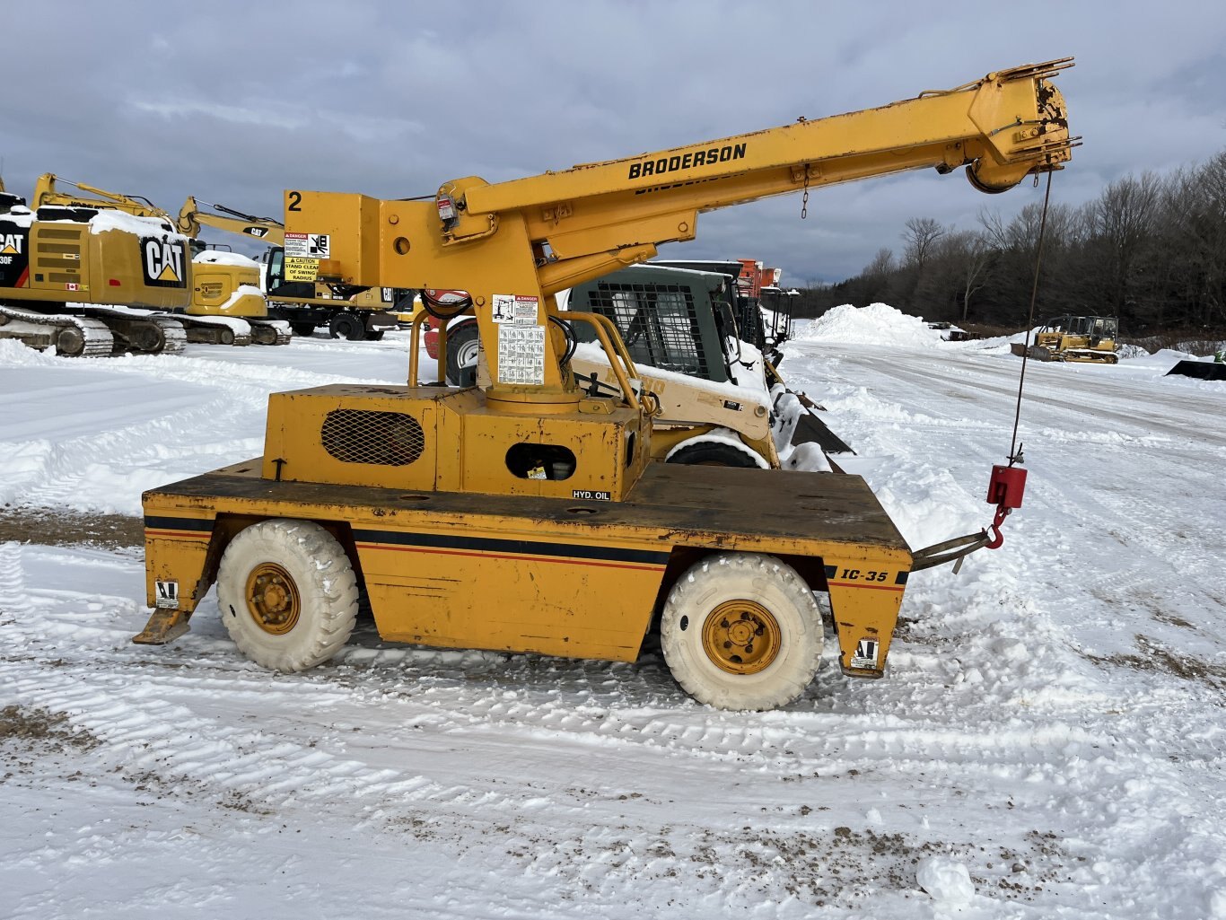 2004 Broderson IC35-2C Dock Crane is powered by a dual fuel engine. max lift capacity 8,000lbs and max reach 33ft. Hour meter reads 2091.